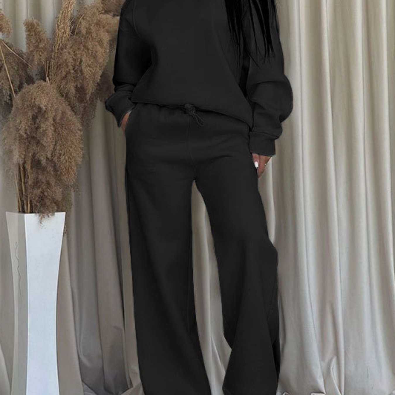 2025 autumn-winter new style solid color round neck long sleeve loose casual wide-leg pants set for women