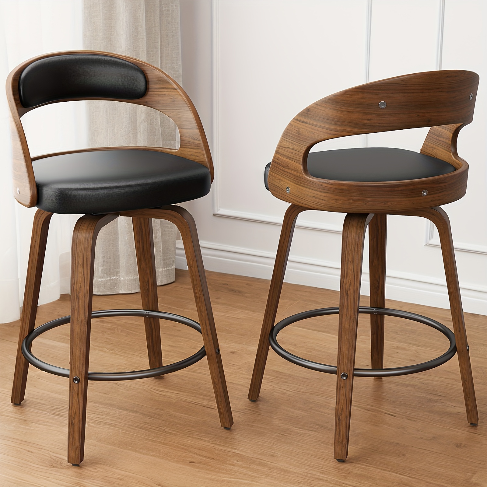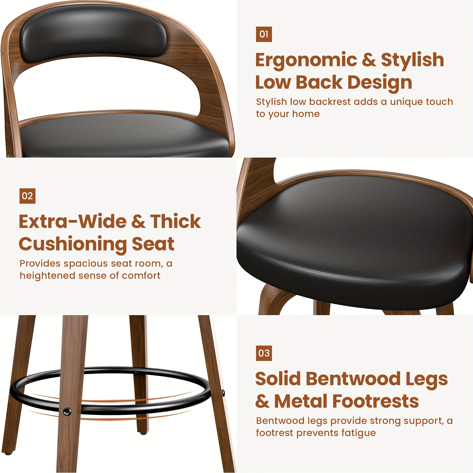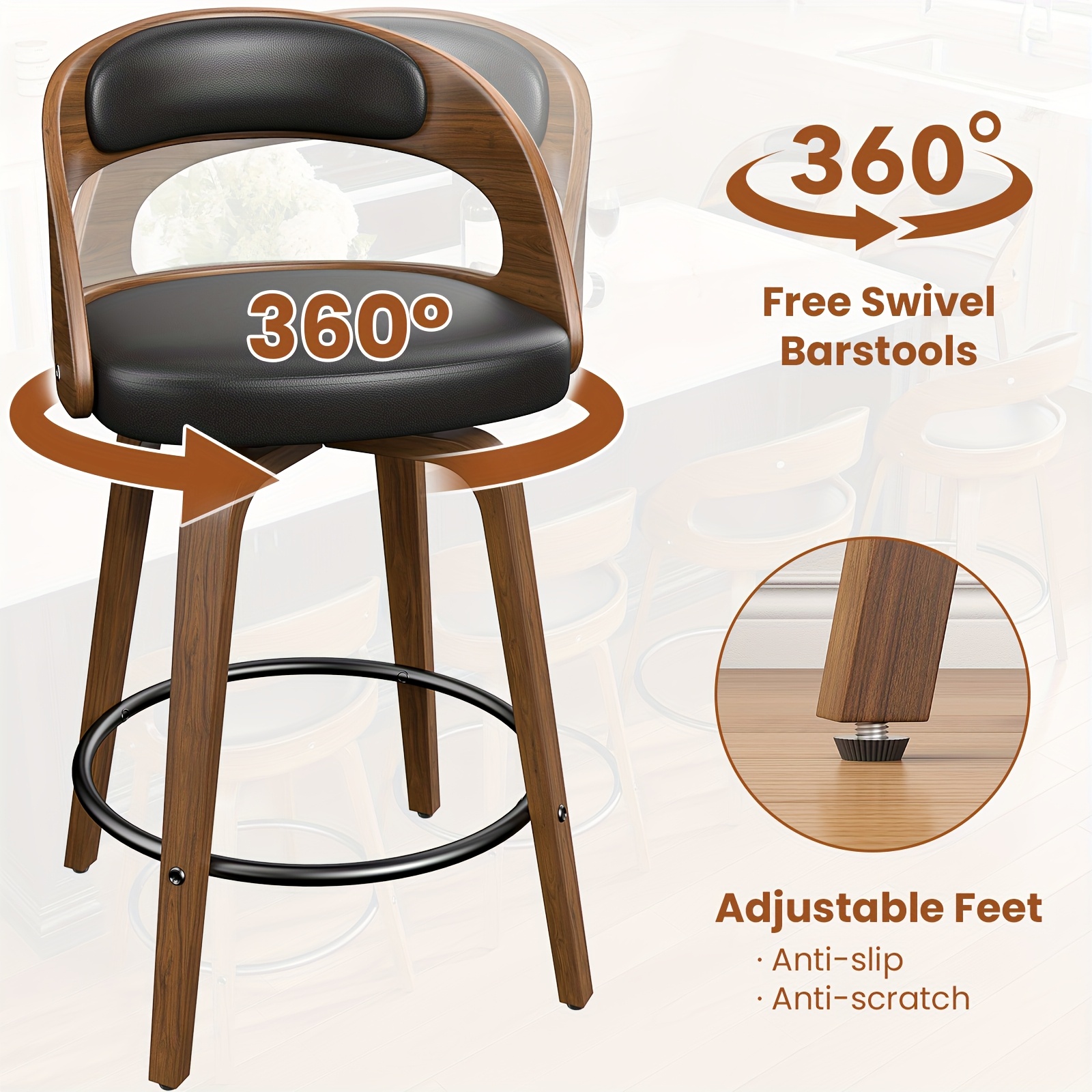 3/4 Bar Stool Set: Luxurious Faux Leather, Swivel Design, Armless, Featuring Thick Cushions And Back Support, Specifically Designed for Kitchen Islands And Bar Counters.