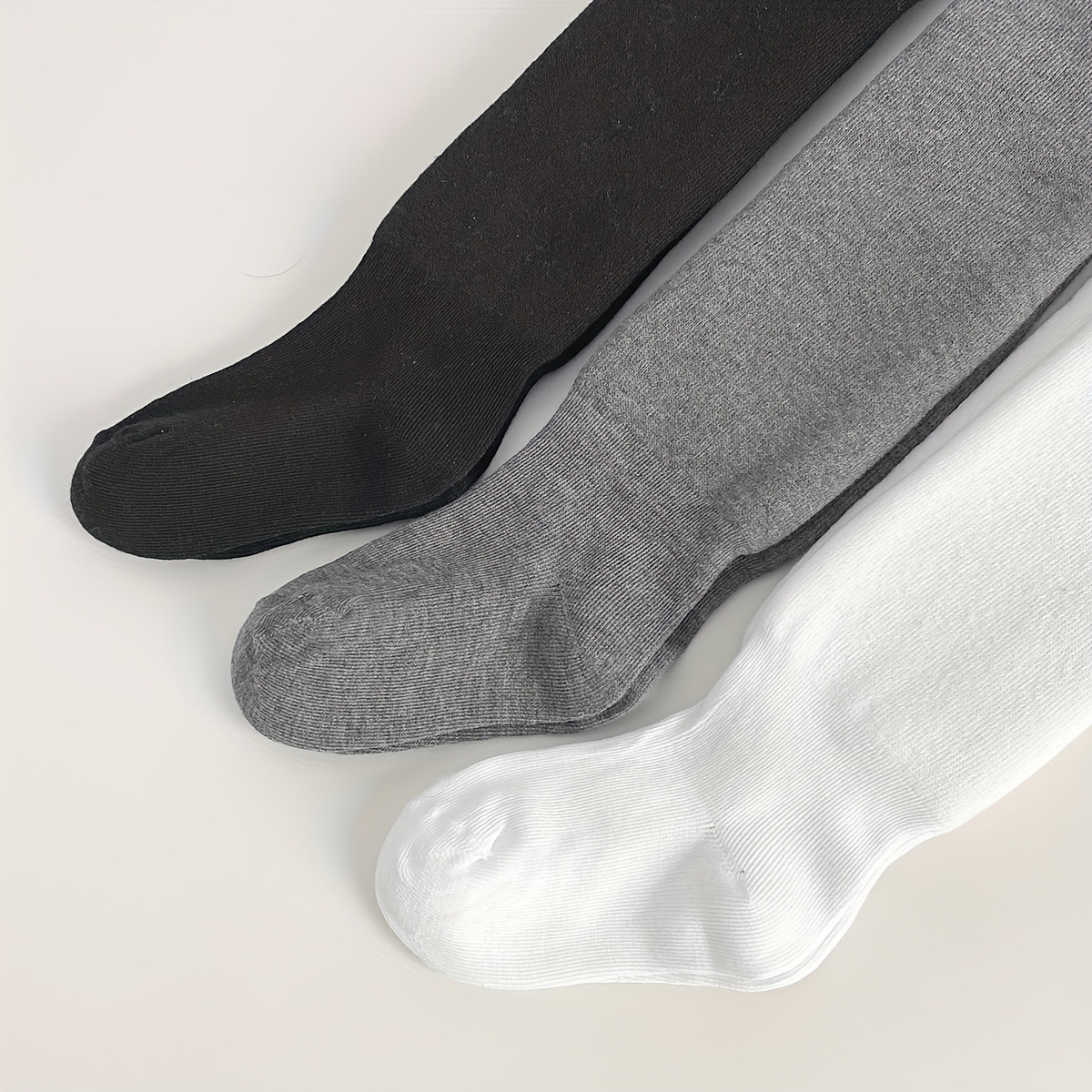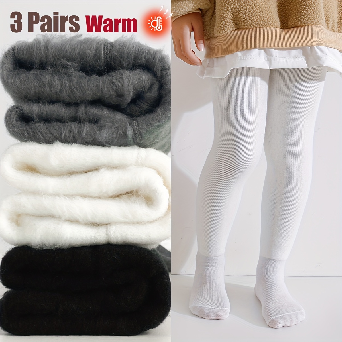 3 Pairs girls tights baby toddler leggings socks Children's Tights, Fleece-Lined & Thickened Style, Suitable for Daily Wear in Winter, Classic Black, White and Gray Colors for Simple & Versatile Matching, Seasonal Clothing, C