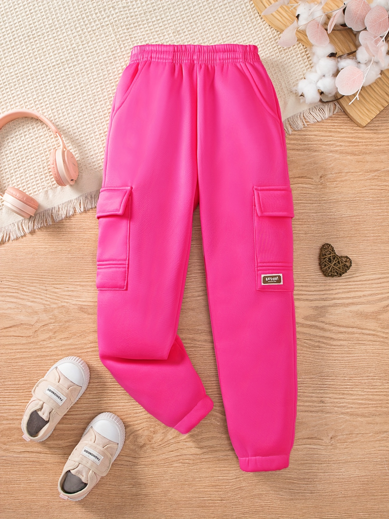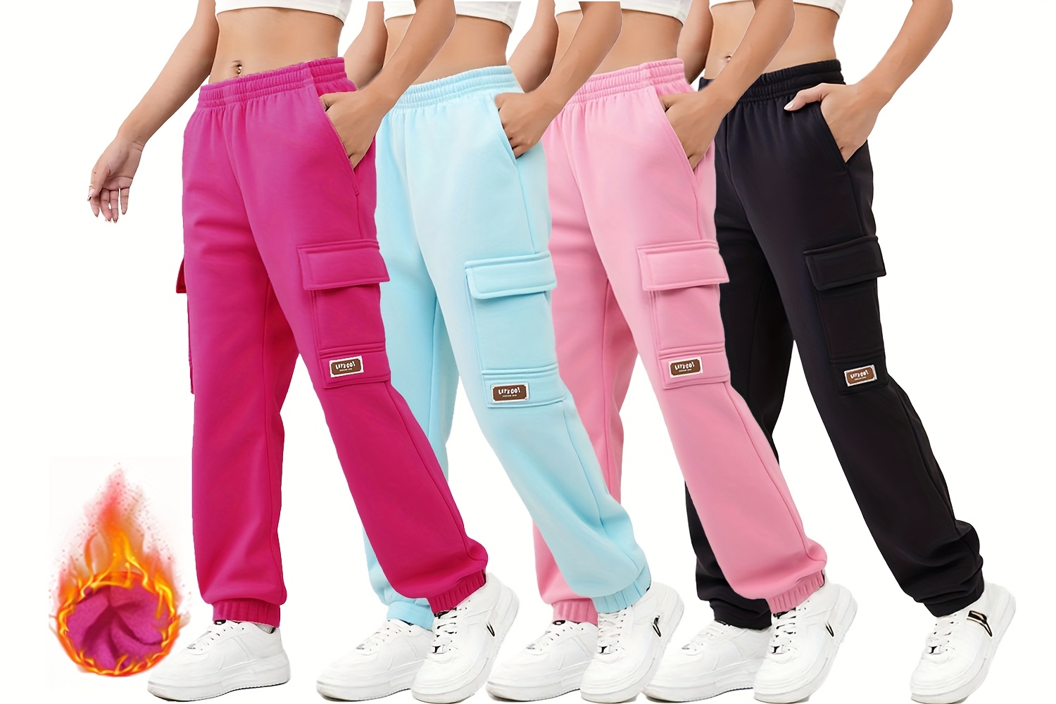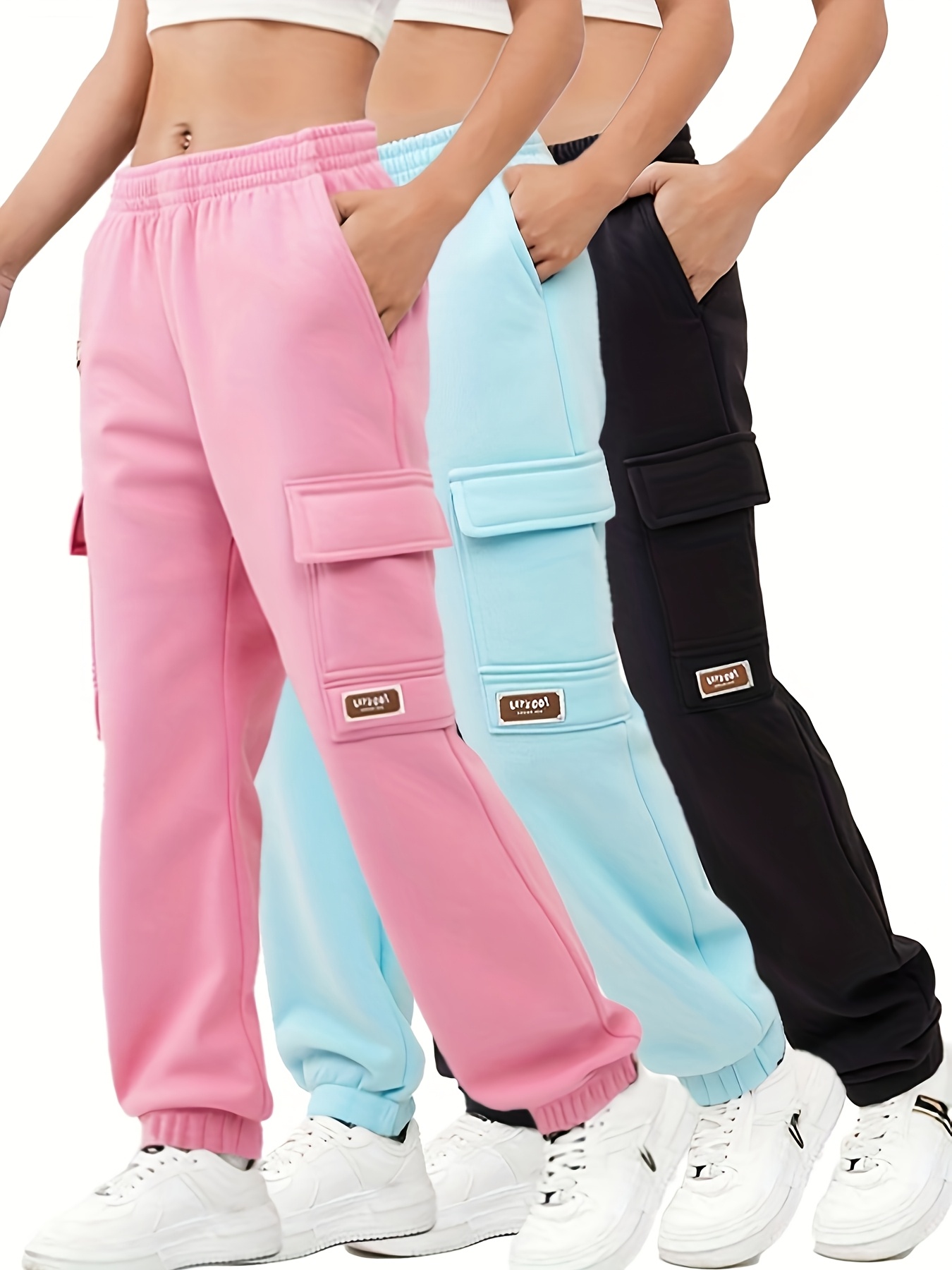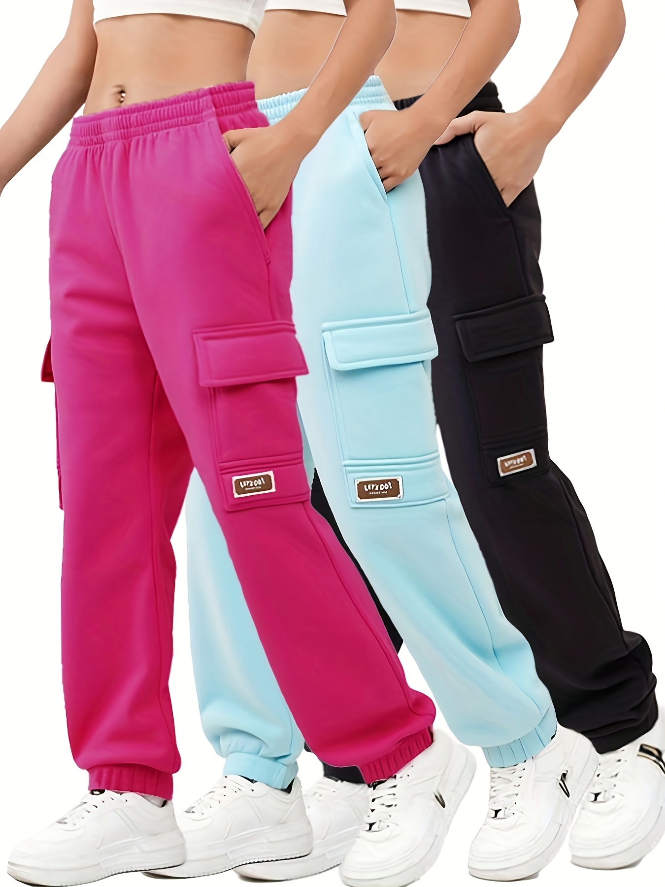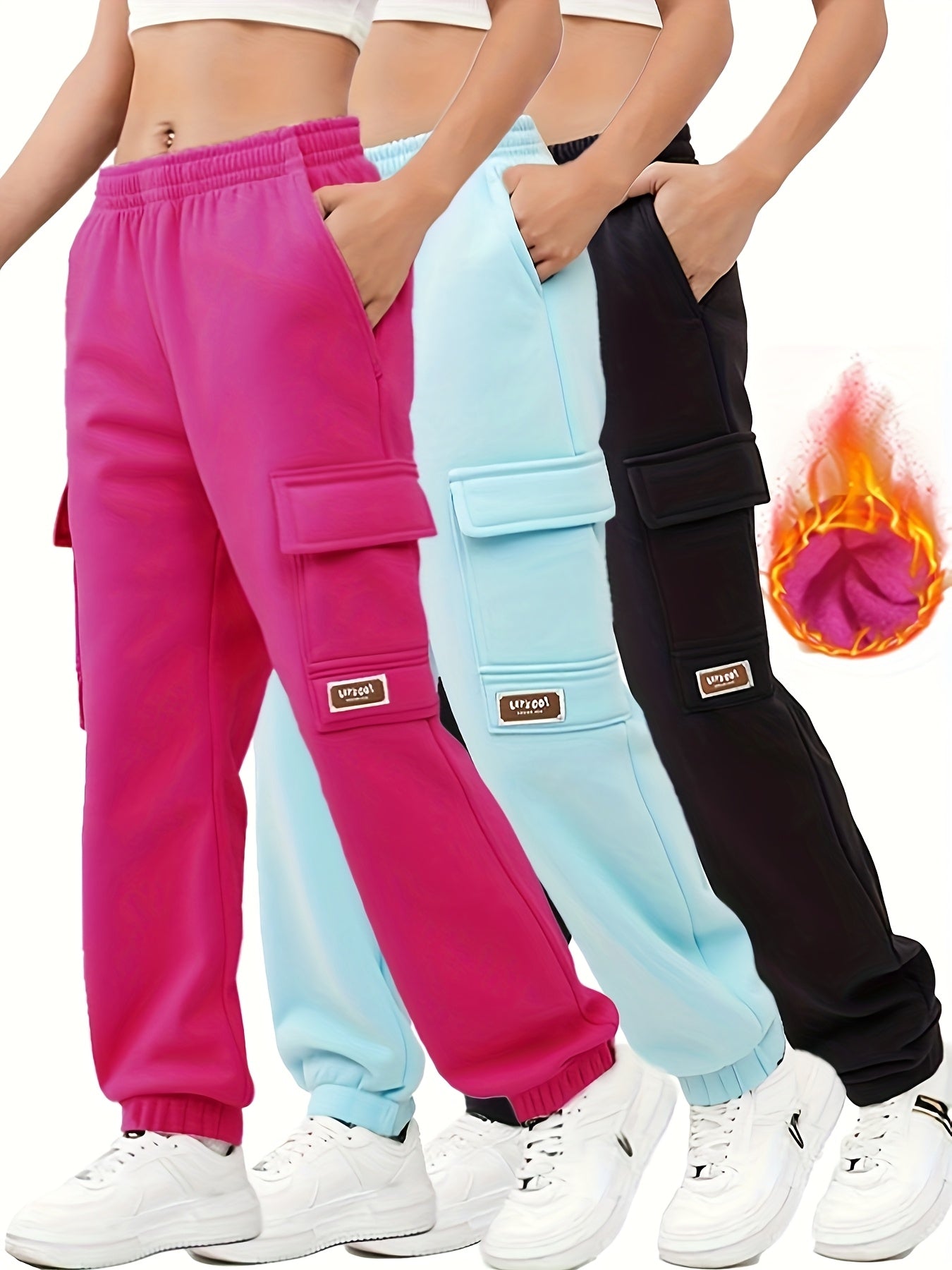 3pcs Girls' Thermal Pants with Elastic Waist & Multi-Pocket Design - Winter Warm Cargo Trousers for Outdoor Play,, Skiing - Pink//Dark Blue Teen Girls' Casual Pants (Hand Washable), Perfect for Outdoor