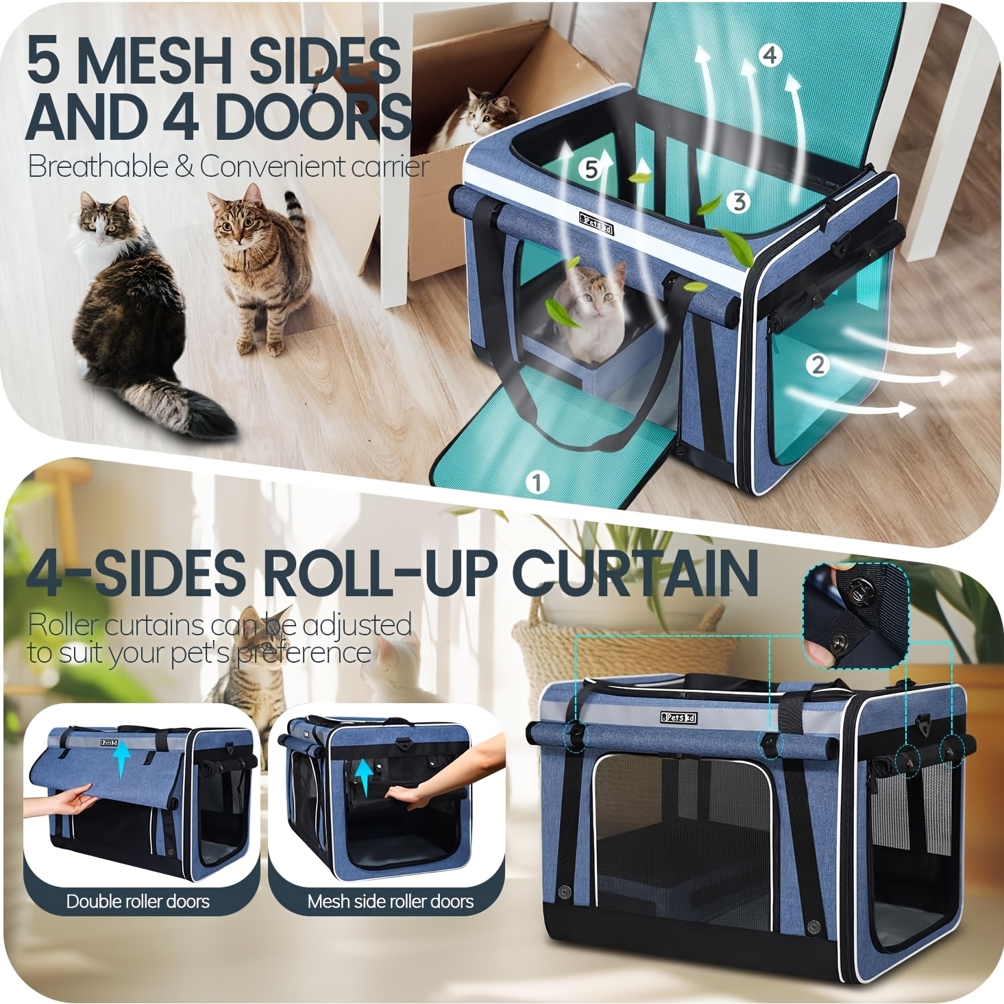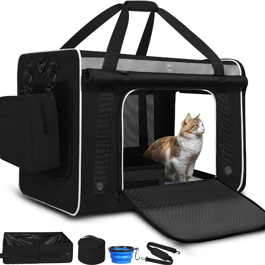 55 lbs Large Pet Carrier with Litter Box - Extra Large 24x17x17 Inches Heavy-Duty Soft Travel Crate, Heavy-Duty Zipper Locking Mechanism, Spacious Interior for Cats, Dogs, - Ideal for Long Flights, Road Trips, Vet Visits - Id