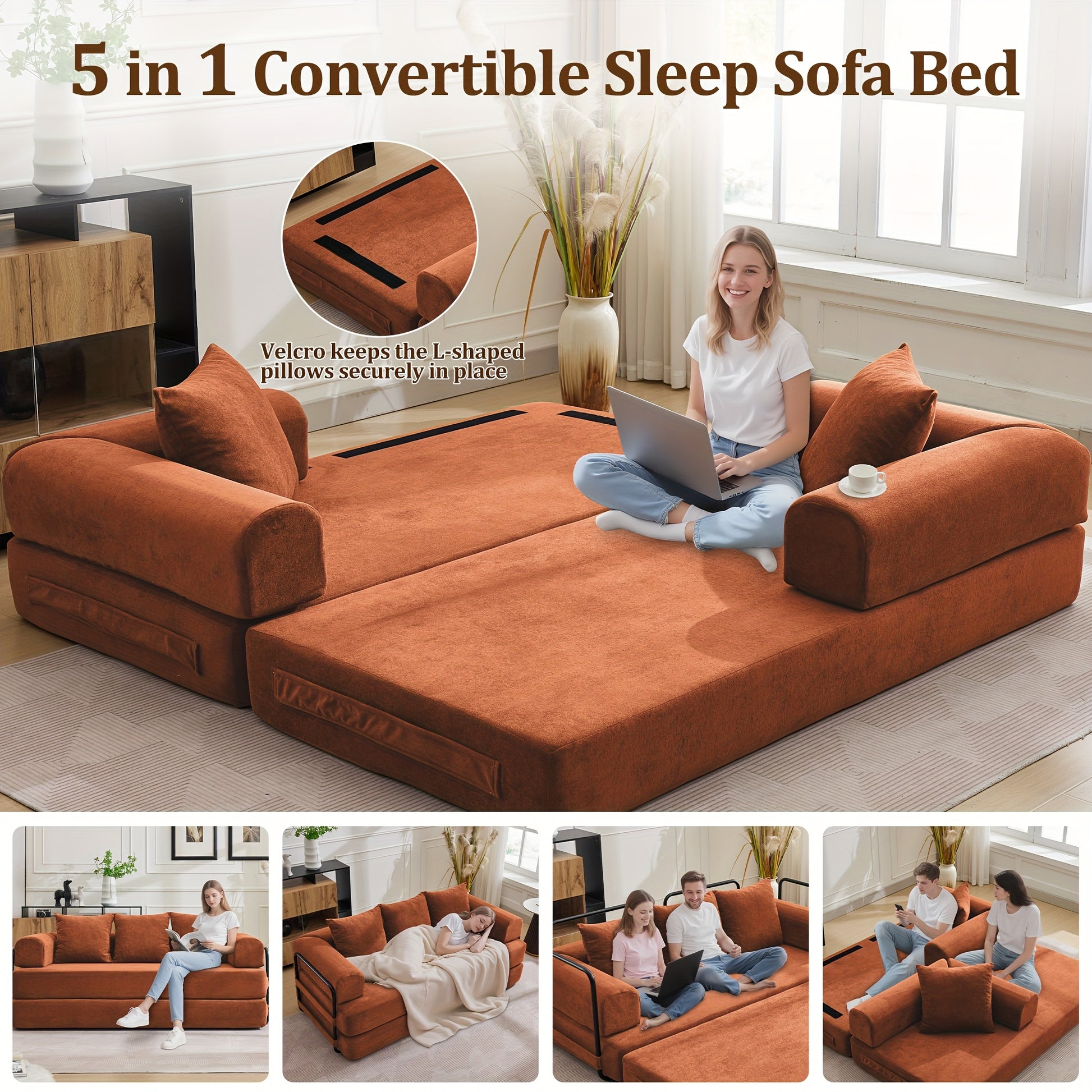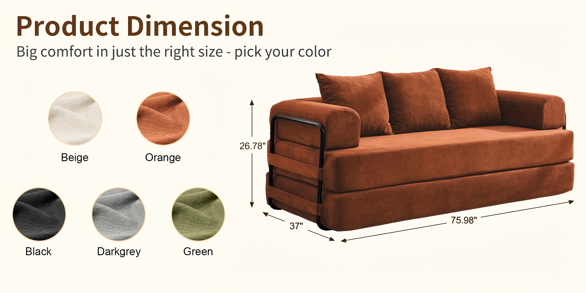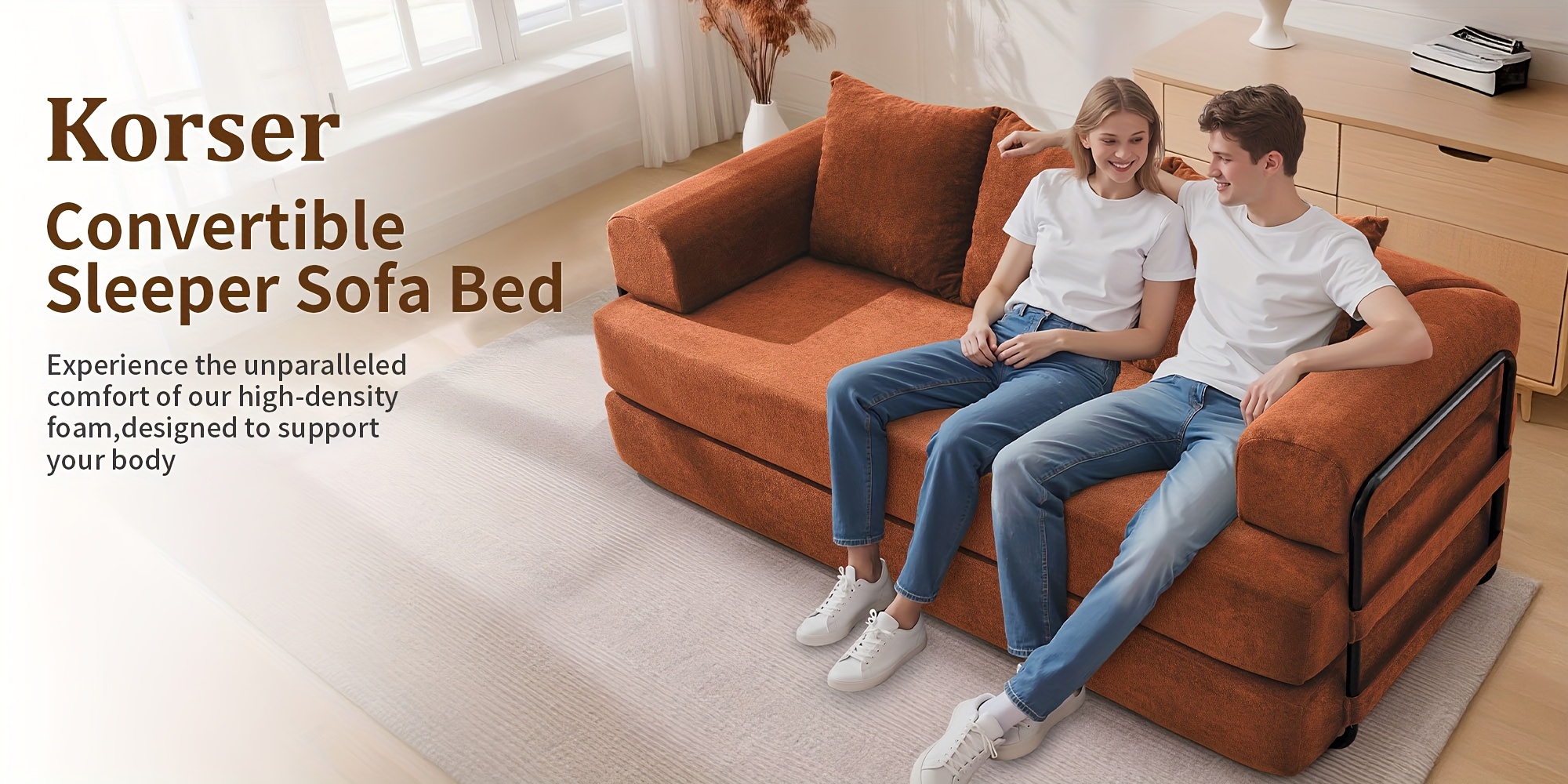 75-inch Living Room Sofa Bed, KORSER Modular Sofa, Double Multi-position Sofa Bed, Elegant Decoration, Thick And Comfortable Cushions, Durable Structure, Extra Deep Seat Sofa, Comfortable Chenille Fabric