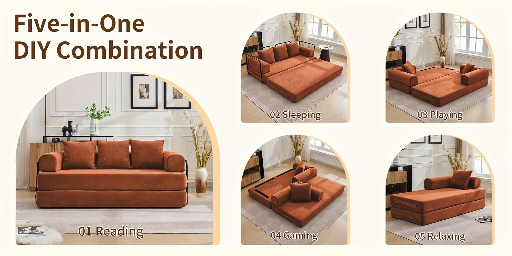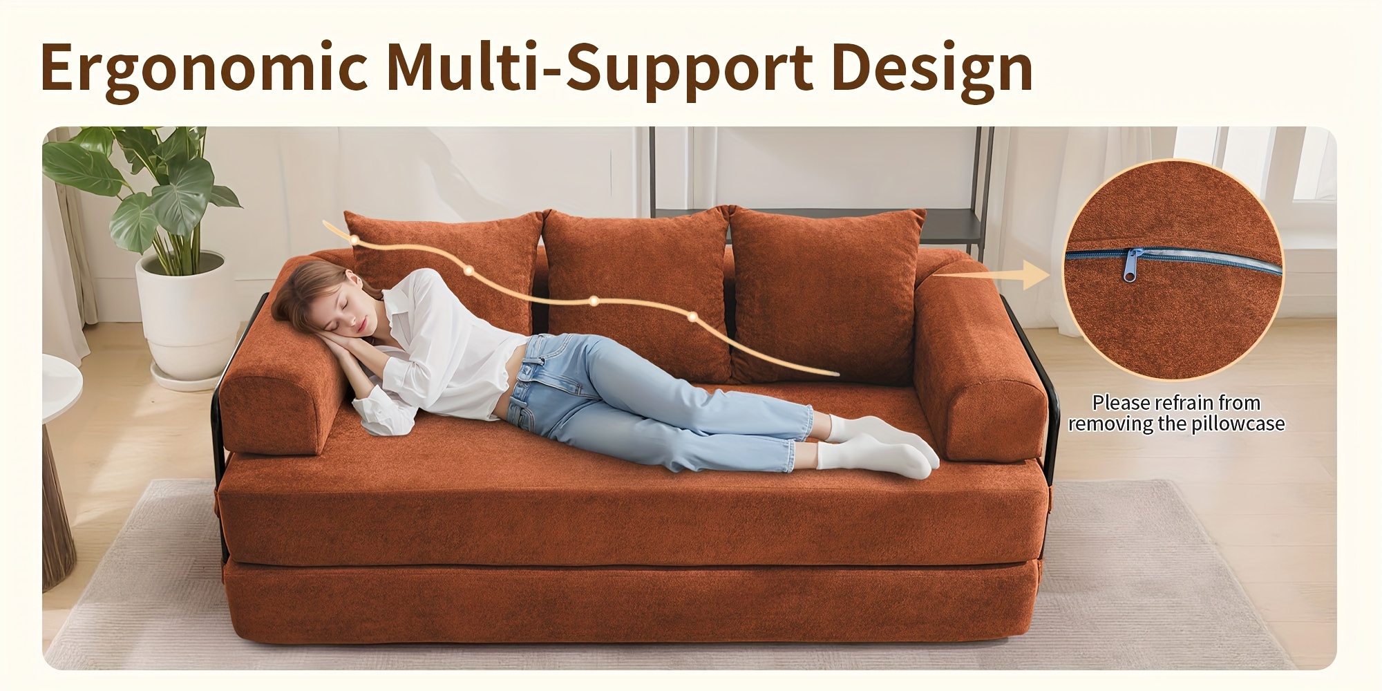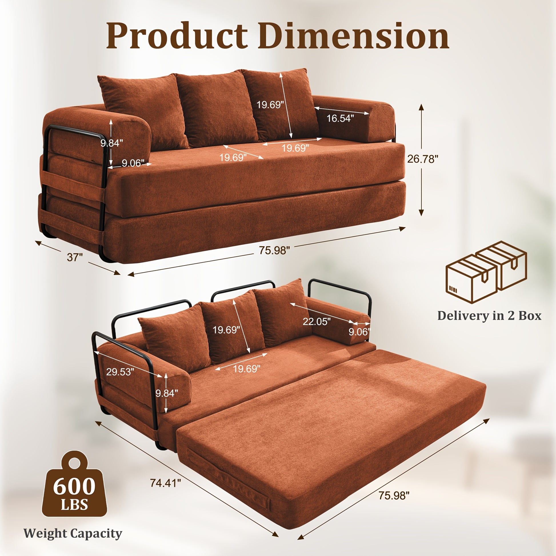 75-inch Living Room Sofa Bed, KORSER Modular Sofa, Double Multi-position Sofa Bed, Elegant Decoration, Thick And Comfortable Cushions, Durable Structure, Extra Deep Seat Sofa, Comfortable Chenille Fabric