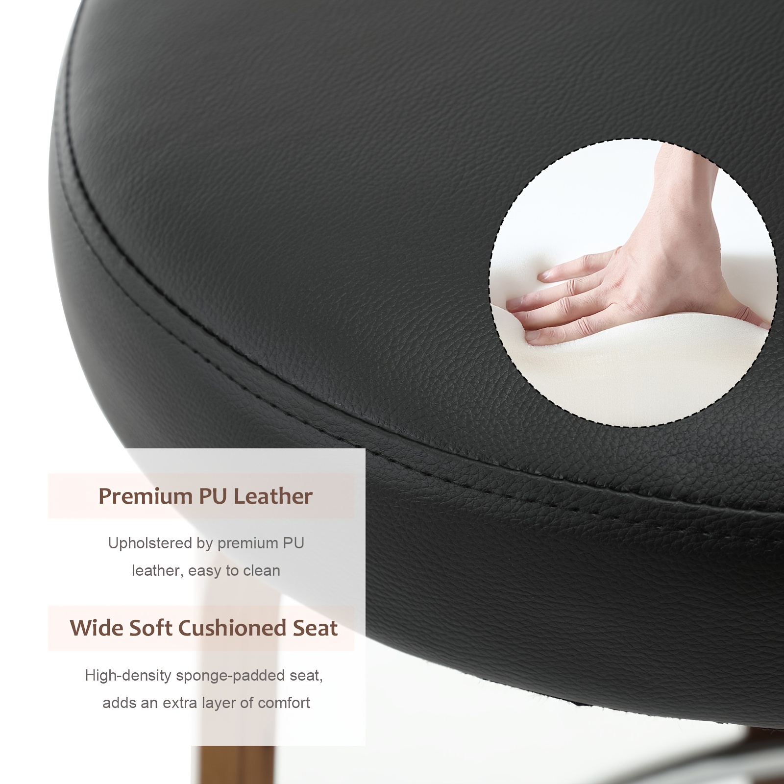 Here are the details: Colors available include black, brown, white, grey, and orange. The seat is made from wood, PU leather, and sponge. The overall dimensions are 20.1 inches deep by 16.9 inches wide by 35.8 inches high, and also available at 39 inches high. It can support a weight of up to 300 pounds. For maintenance, simply wipe with a clean cloth. The seat height options are 26 inches for kitchen counters that are 36 to 40 inches tall, and 29 inches for kitchen islands that are 40 to 43 inches tall. Suitable for various settings such as kitchen counters, restaurants, coffee shops, home pubs, and dining rooms.