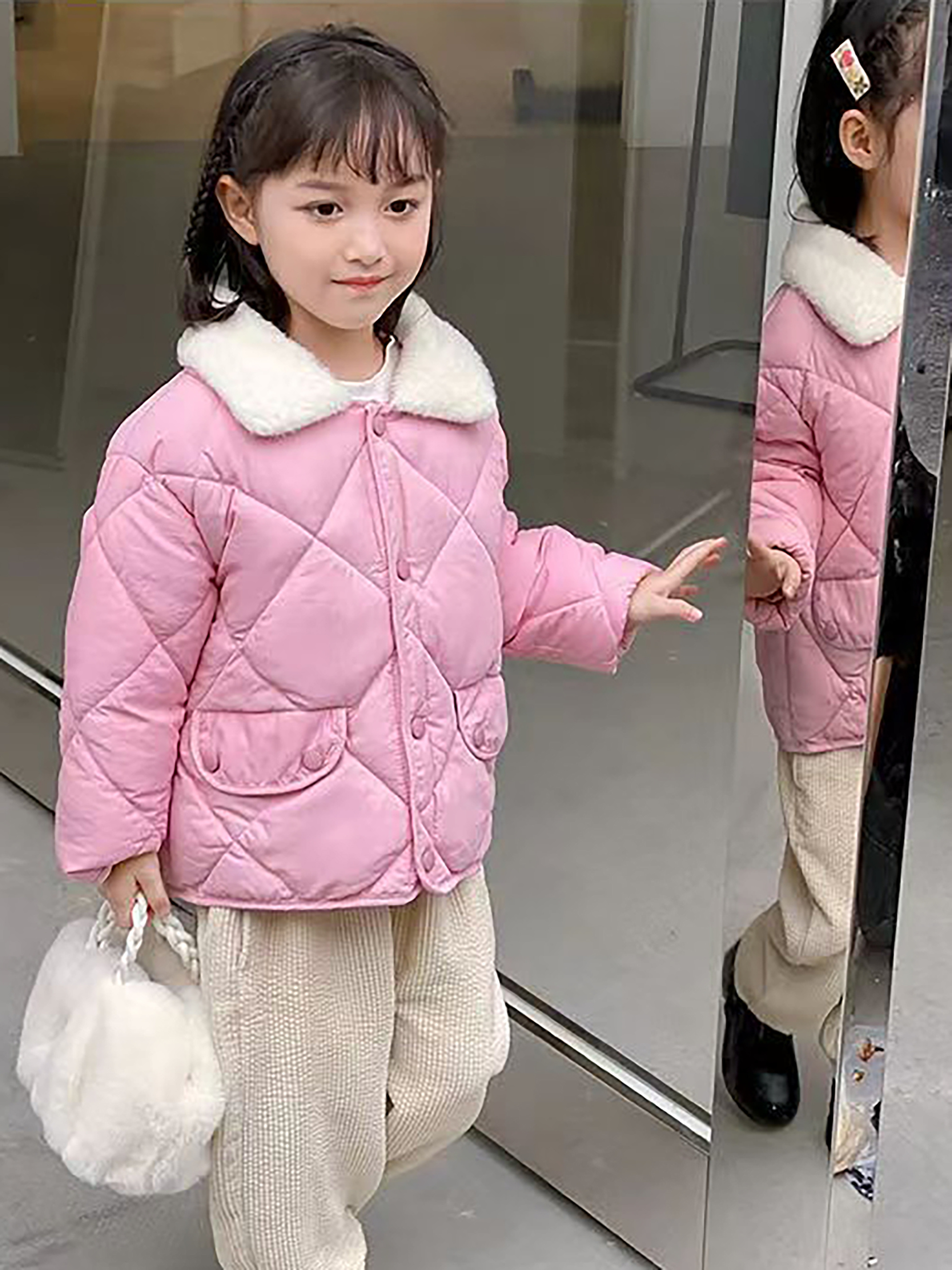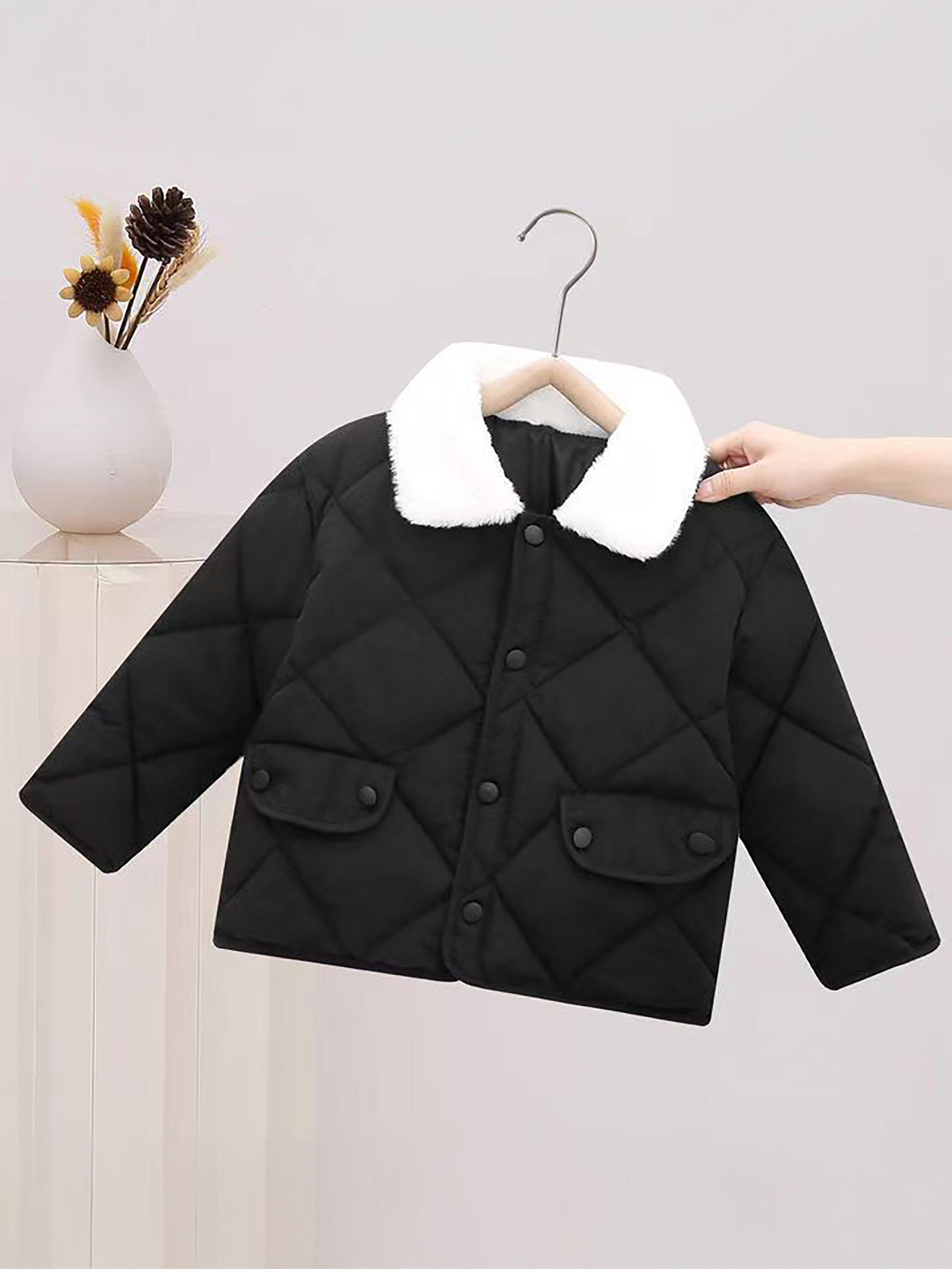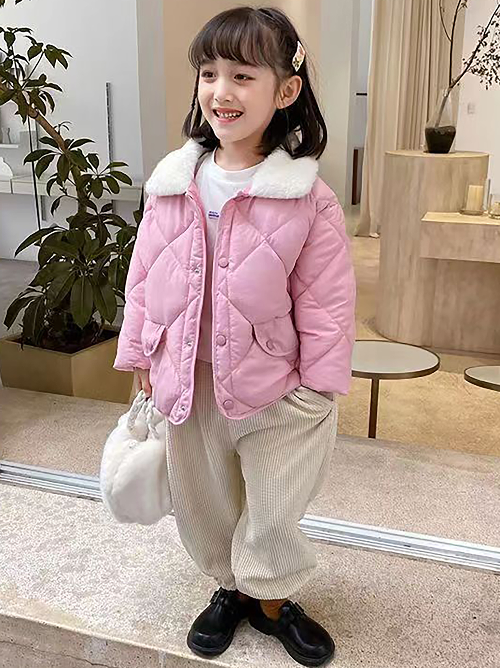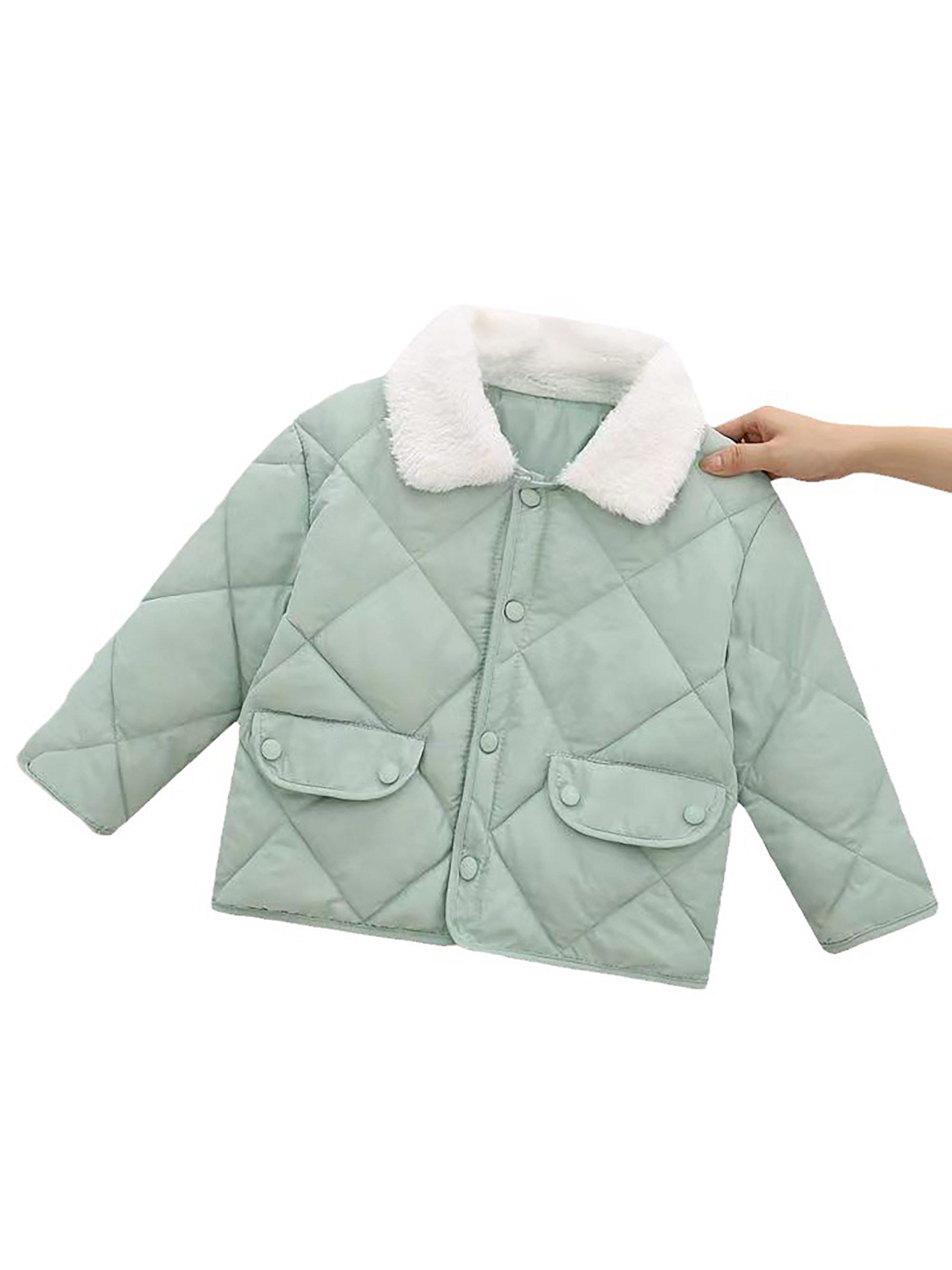 Boys & Girls Korean-Style Winter Jacket with Fur Collar - Thickened Warm Coat, 100% -Filled, Lapel Collar & Button Front, Long Sleeve Snow Suit for Outdoor Play, Skiing, Snowboarding - Ideal Cold Weather Gift