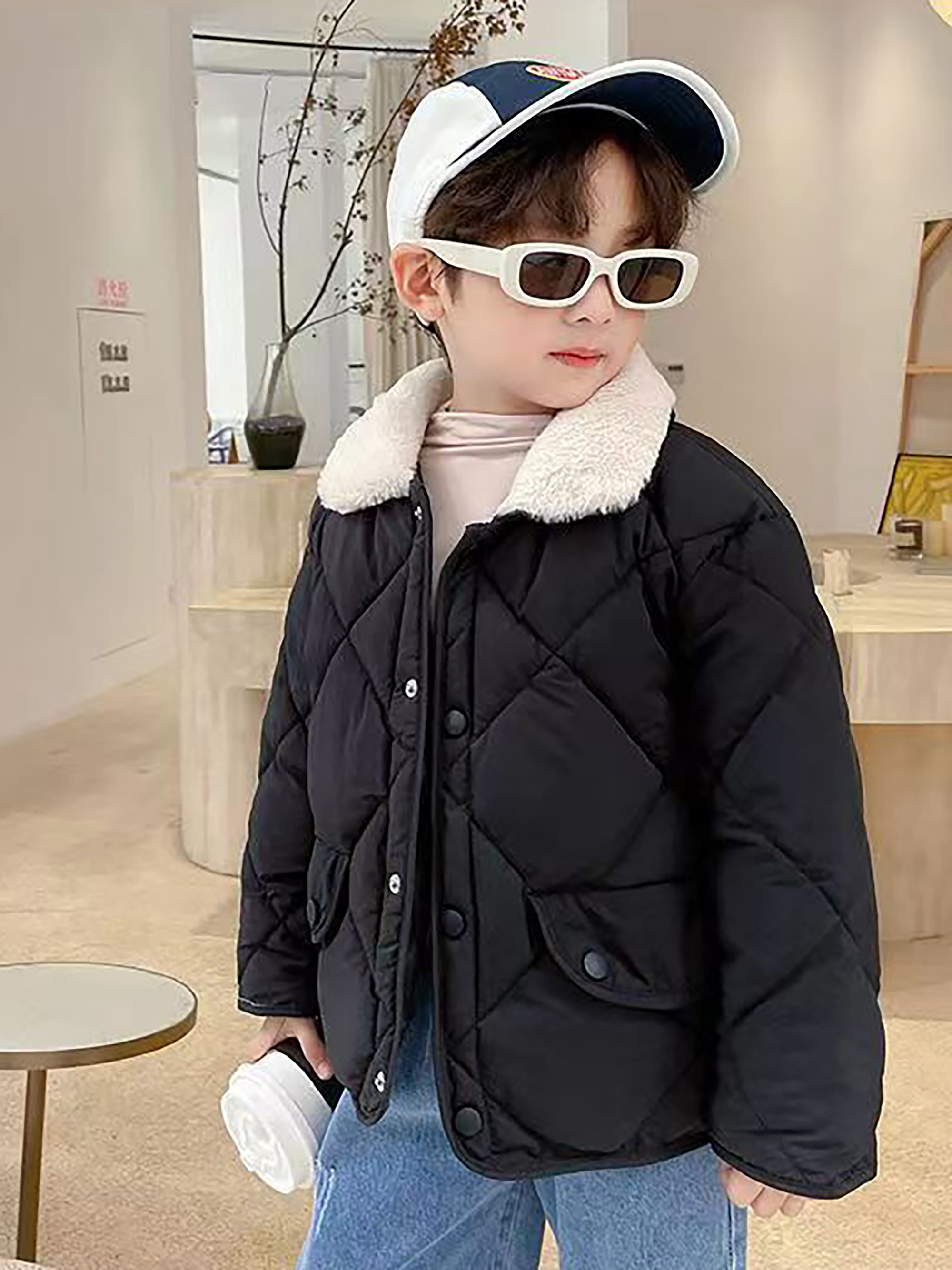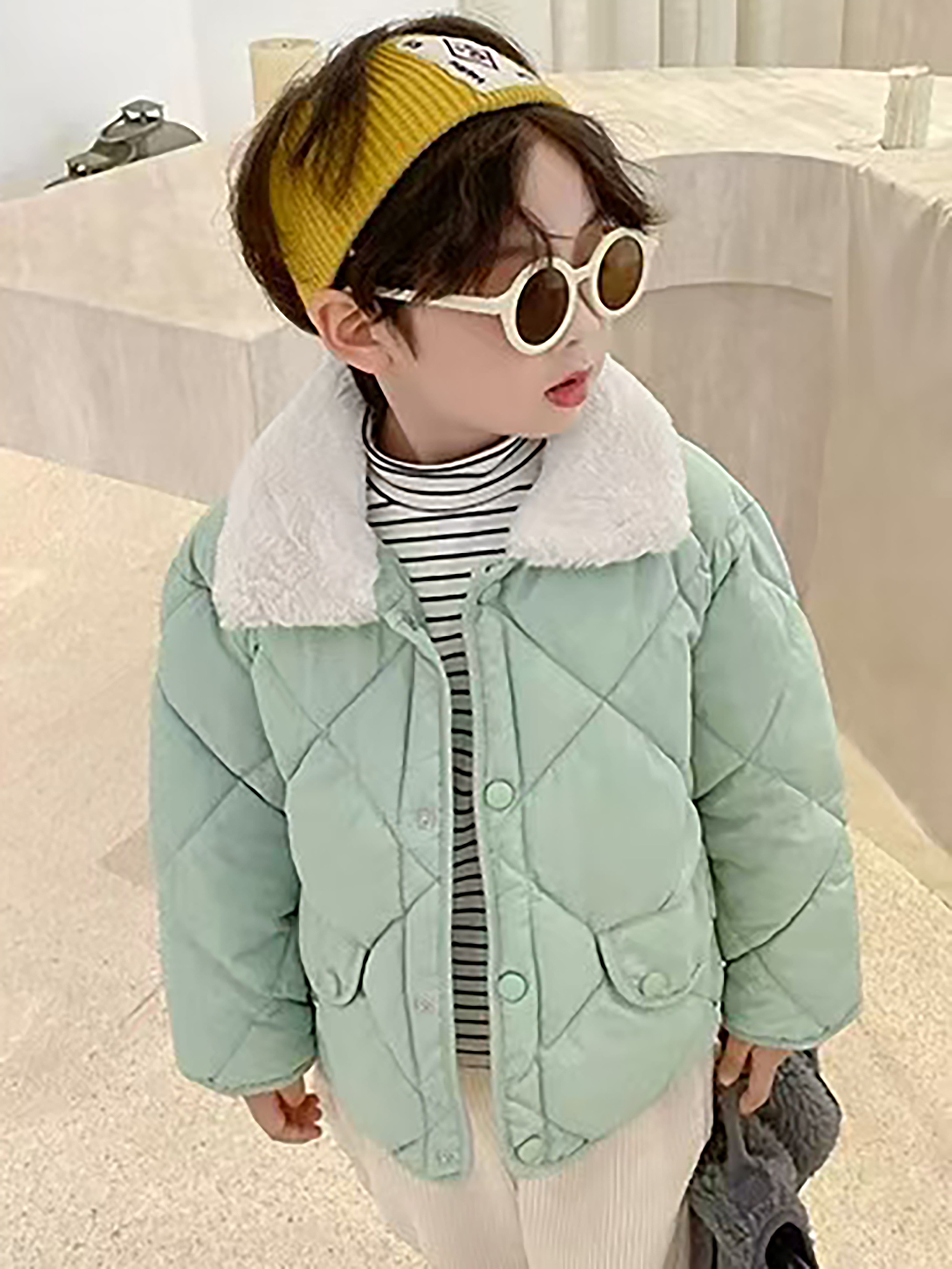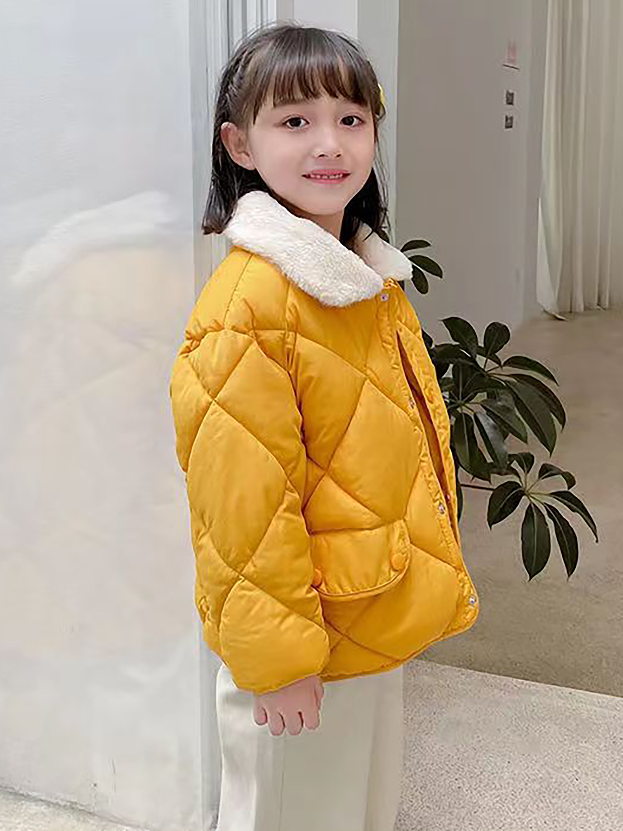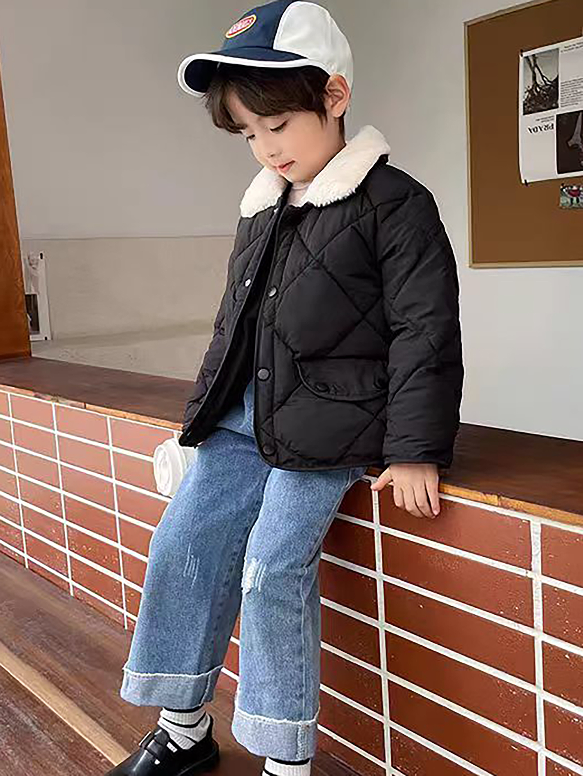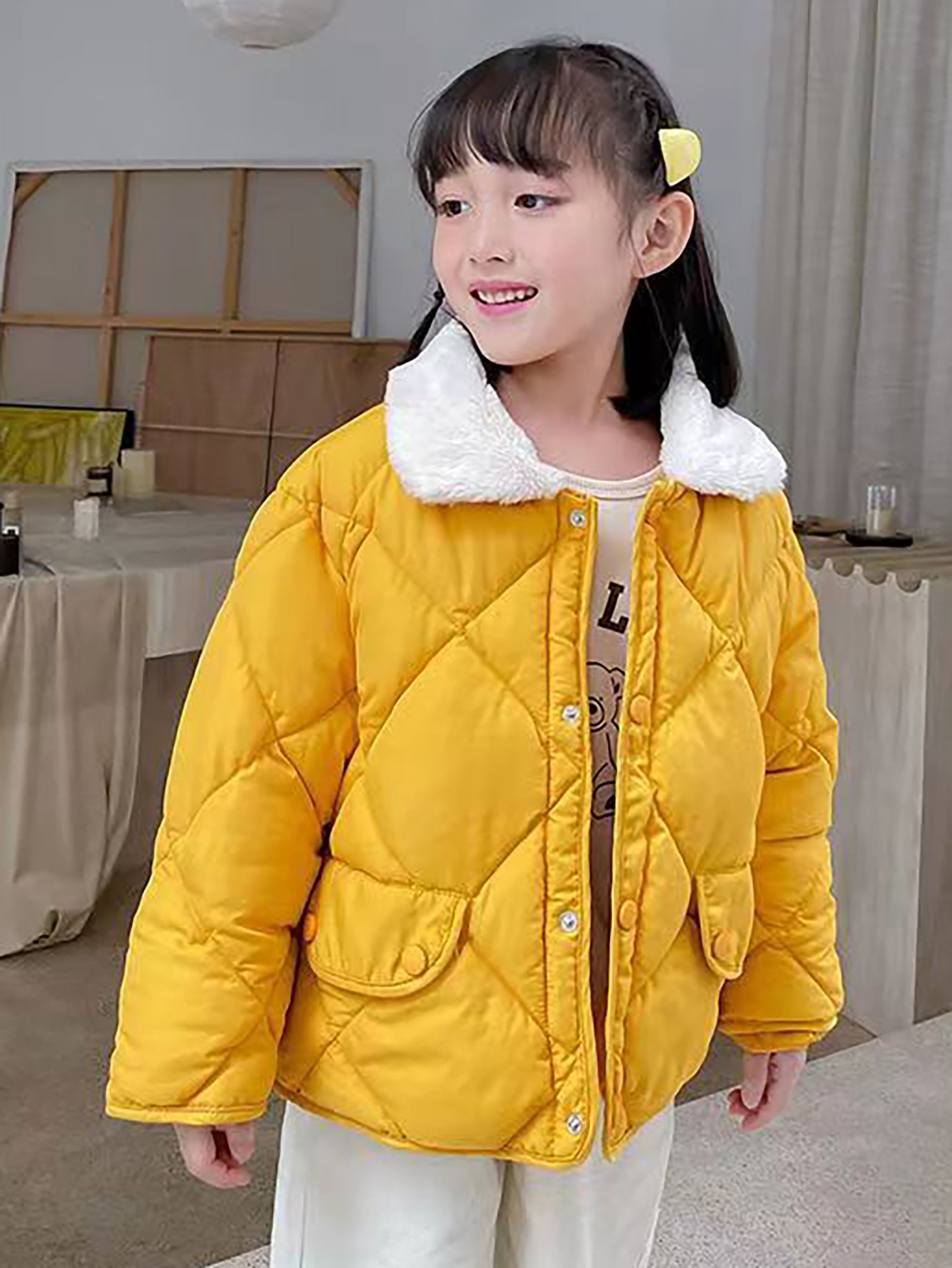 Boys & Girls Korean-Style Winter Jacket with Fur Collar - Thickened Warm Coat, 100% -Filled, Lapel Collar & Button Front, Long Sleeve Snow Suit for Outdoor Play, Skiing, Snowboarding - Ideal Cold Weather Gift