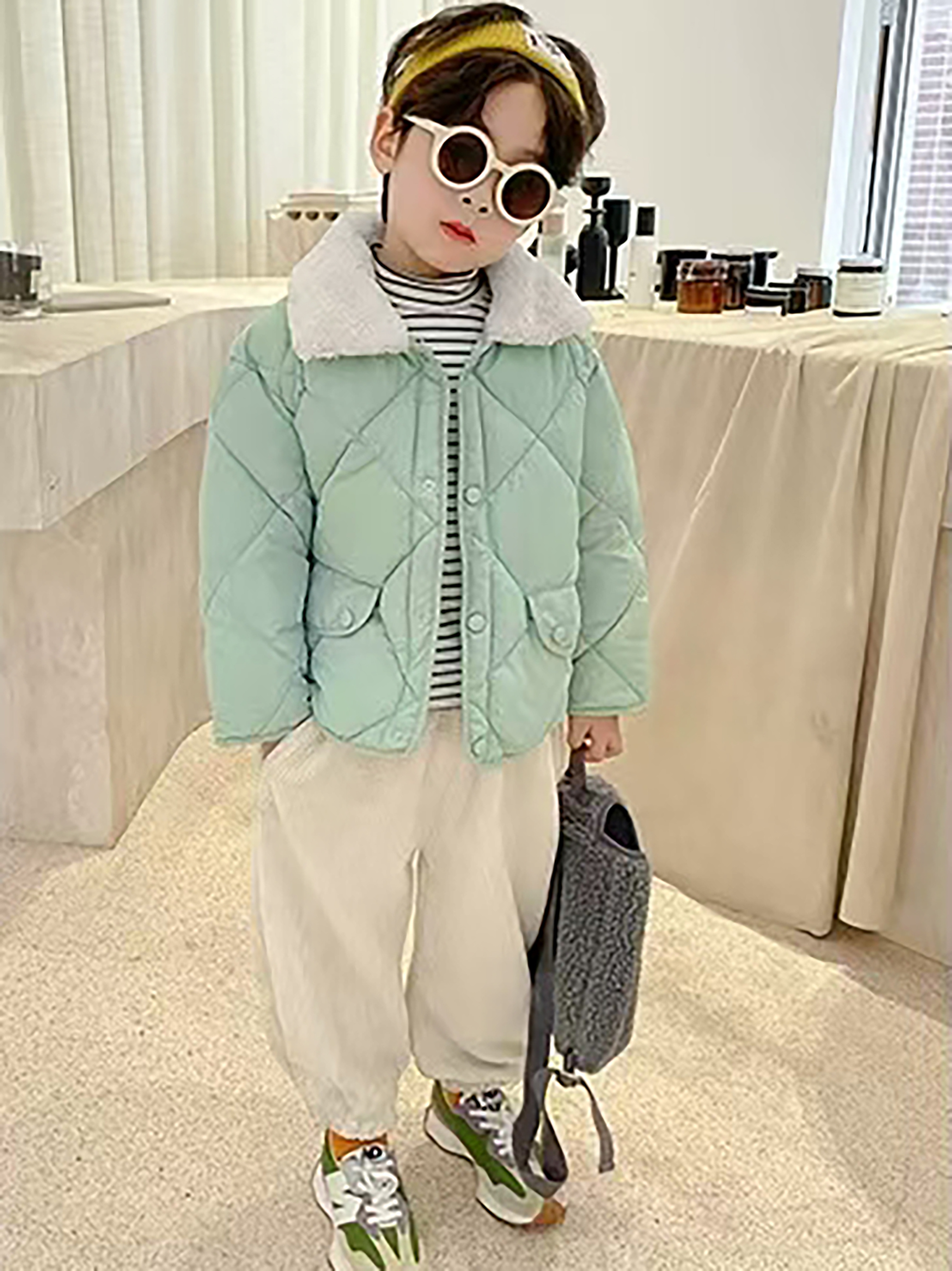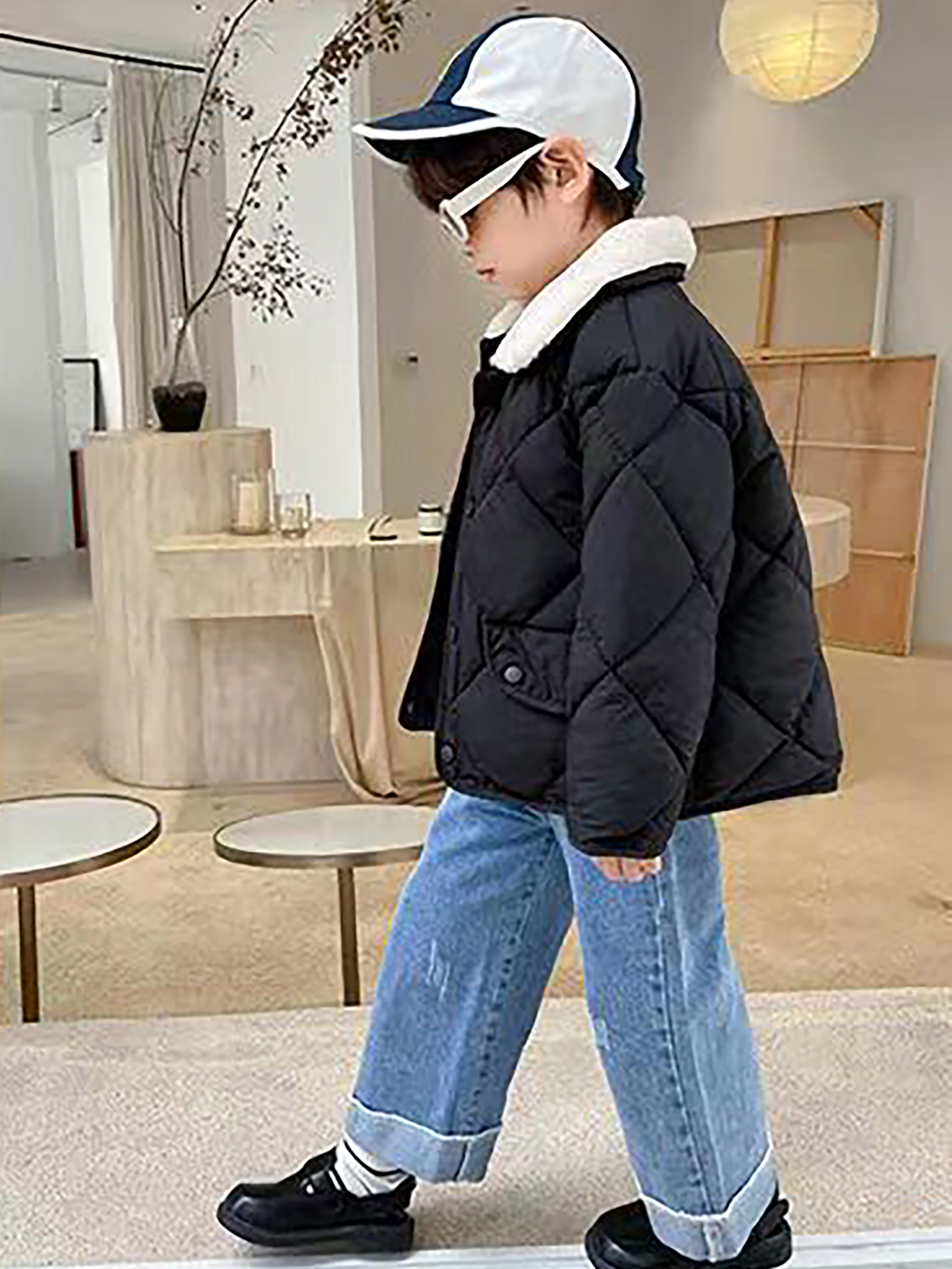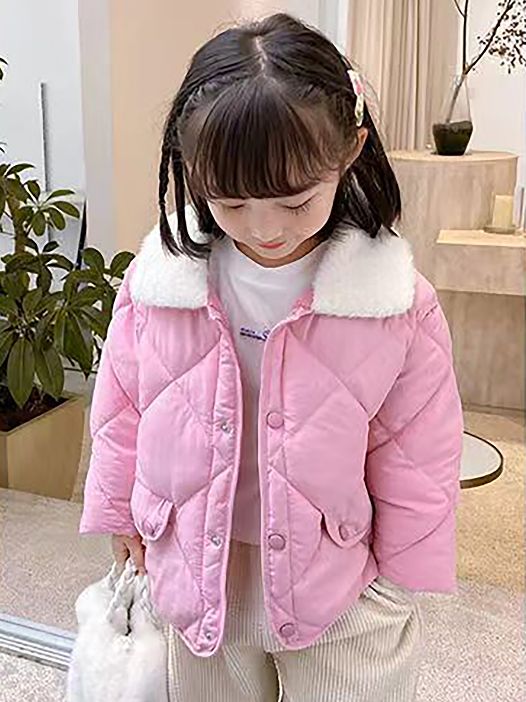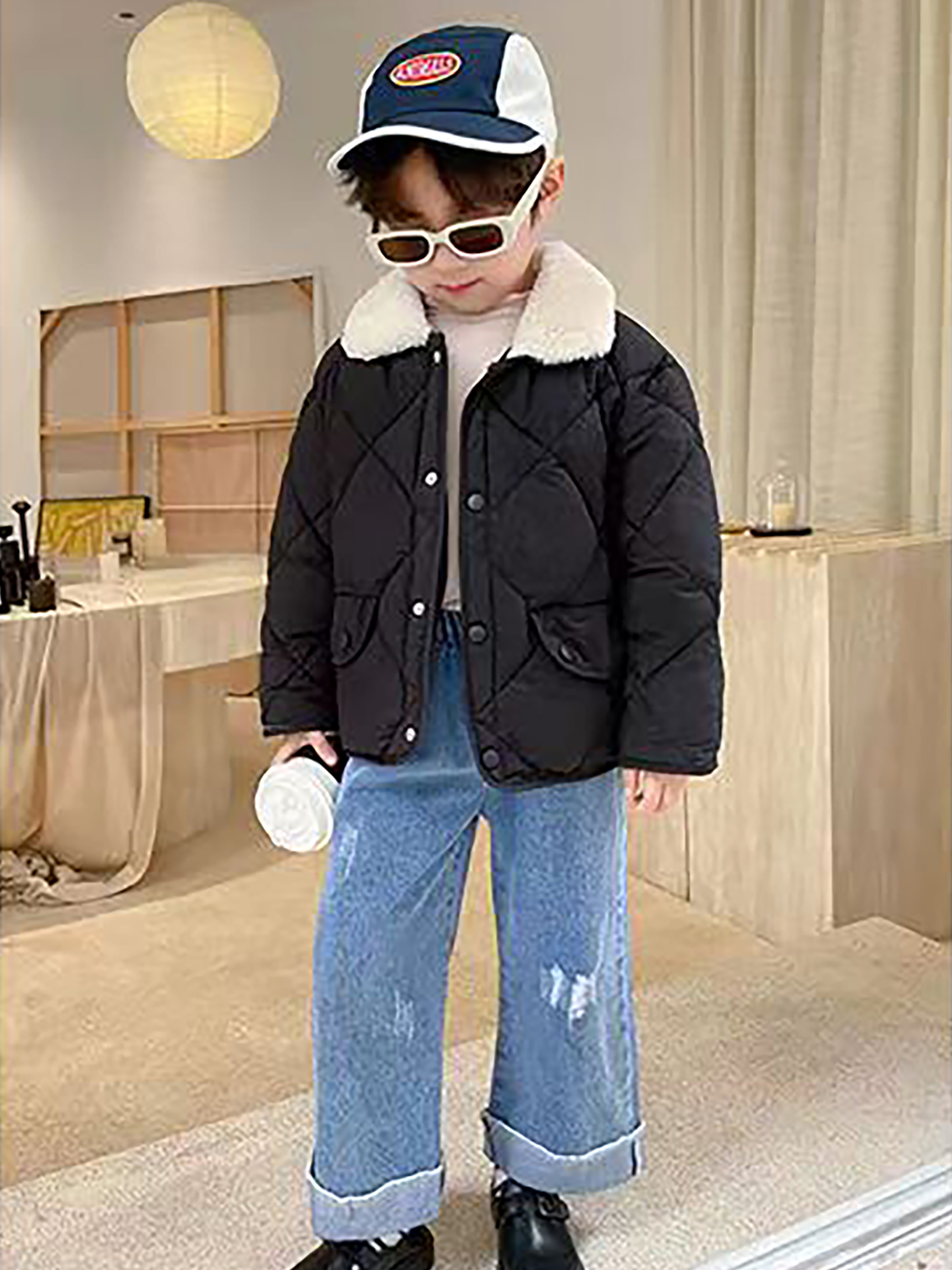 Boys & Girls Korean-Style Winter Jacket with Fur Collar - Thickened Warm Coat, 100% -Filled, Lapel Collar & Button Front, Long Sleeve Snow Suit for Outdoor Play, Skiing, Snowboarding - Ideal Cold Weather Gift