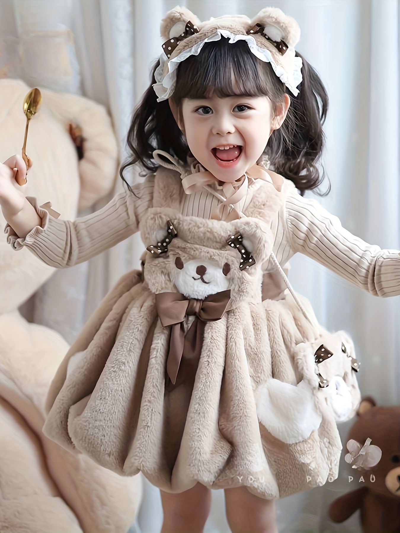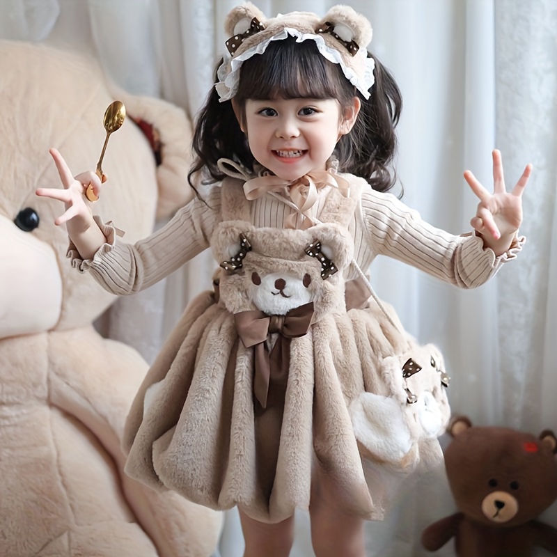 Children's Autumn/Winter Top + Vest with Fuzzy Skirt Two-Piece Set for Little Girls, Stylish Plush Dress for Birthday Party, Cute Daily Wear, Christmas Outfit, Girls' Clothing, Christmas Gift
