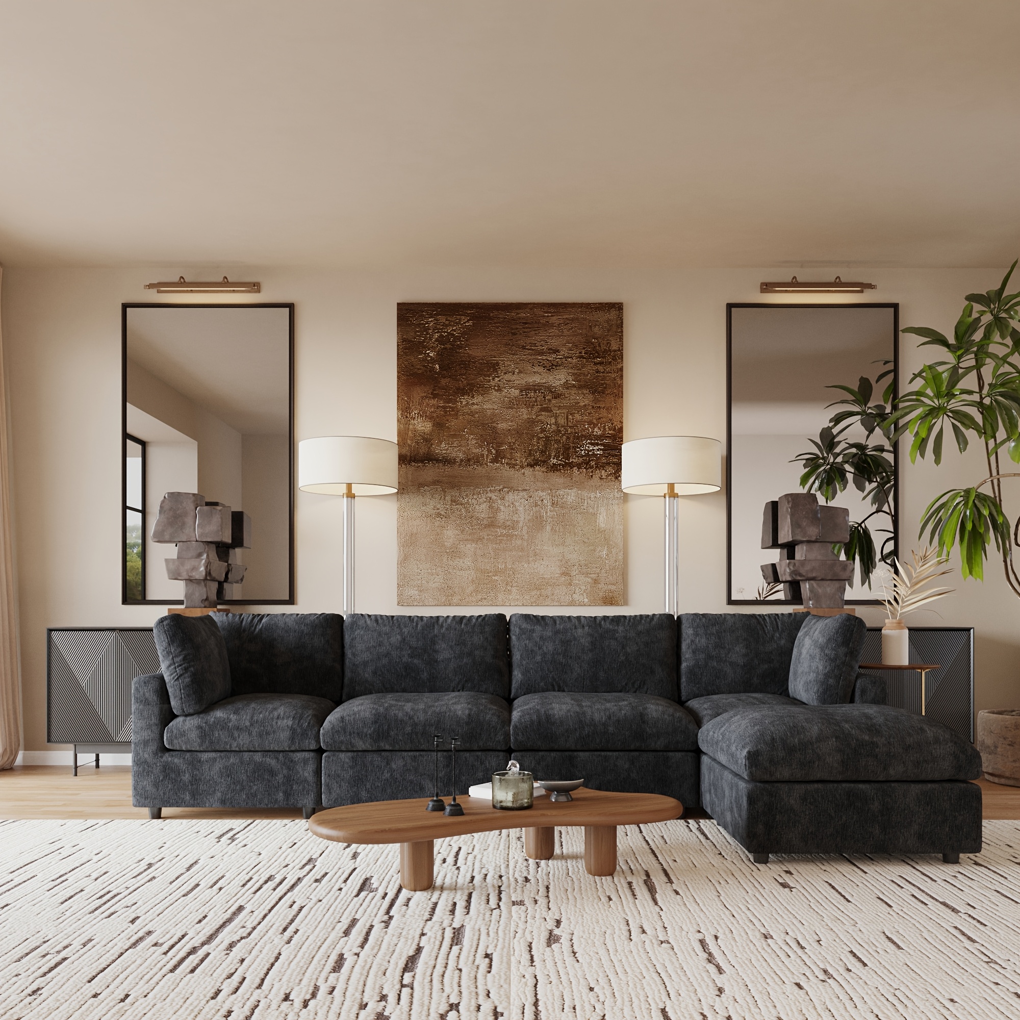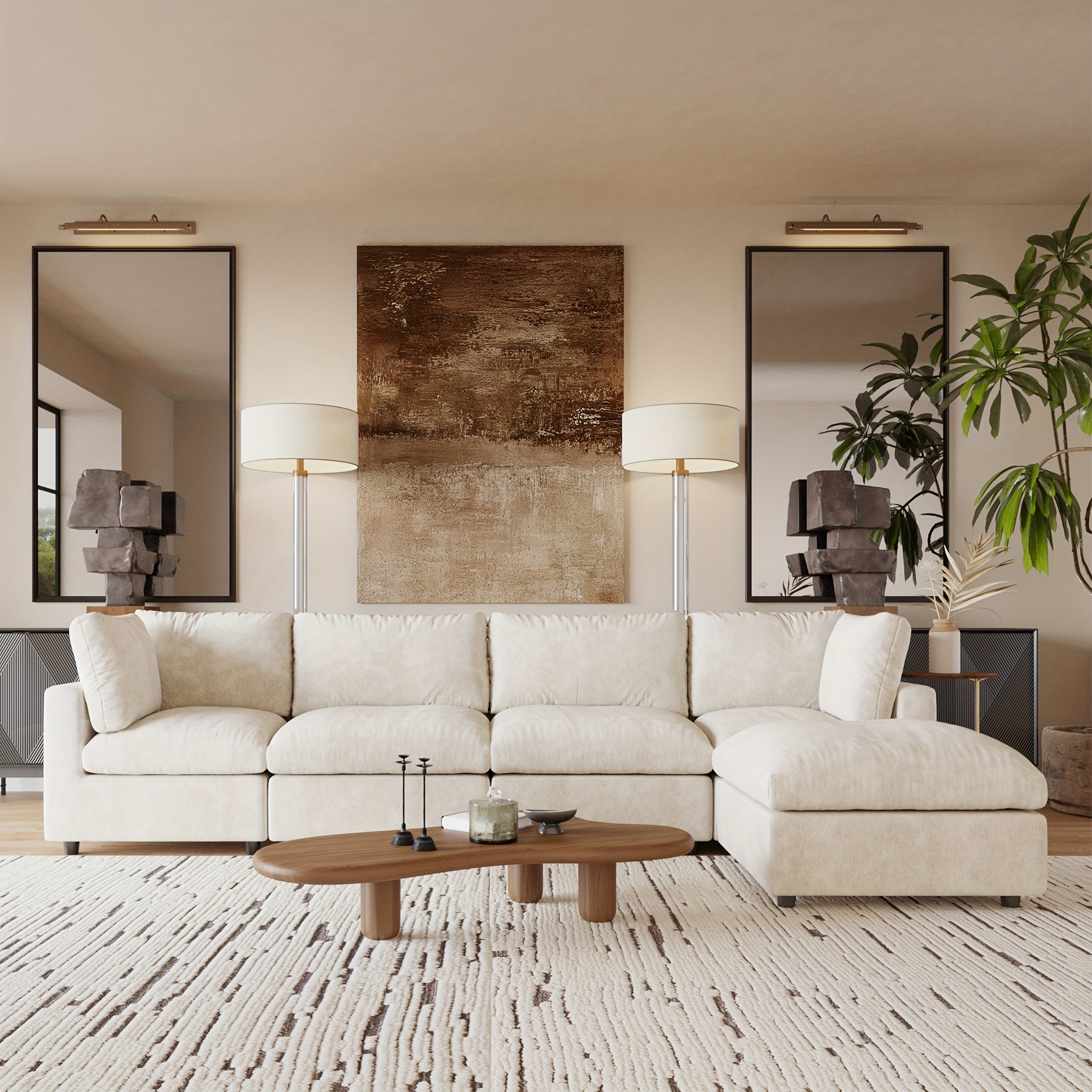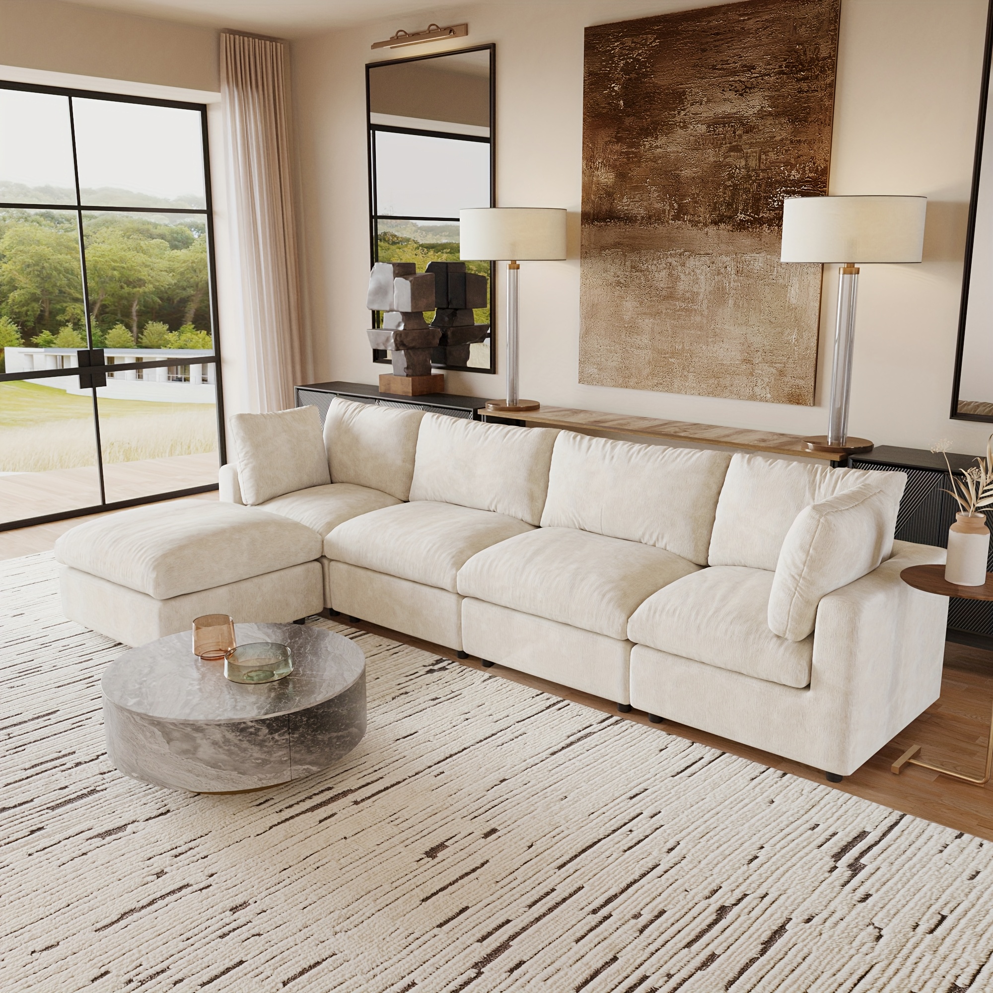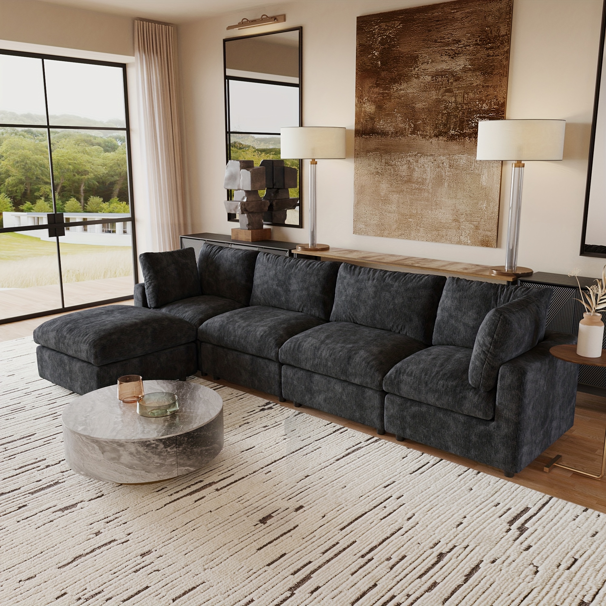 The Modular Sectional Couch allows you to create the perfect arrangement for your area with its adaptable and separate modules. Each piece can be rearranged and positioned as you wish, offering a versatile shopping experience that accommodates any room layout without concerns about dimensions. Whether you are furnishing a large living area, a snug apartment, or a small space, this sofa easily adapts to your lifestyle.