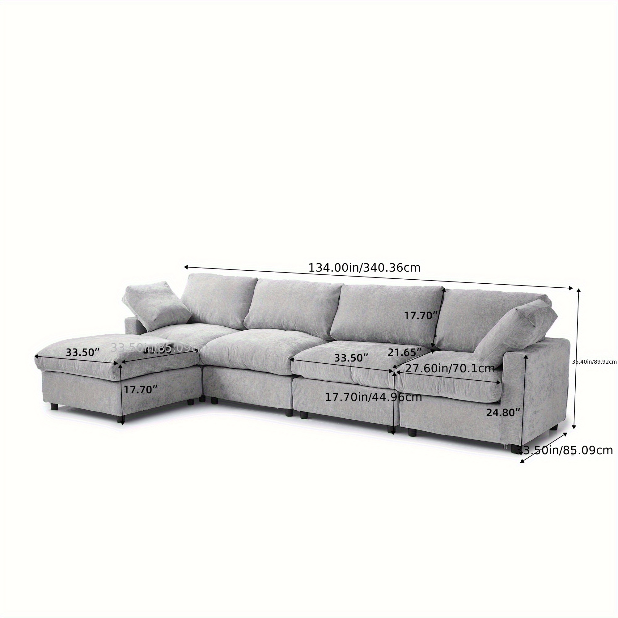 Cloud Couch Modular Sectional Sofa, 134" L Shaped Couch, Oversized Convertible Wide Seater, 4 Seater With Ottoman For Living Room Set, Covers Washable&Replaceable