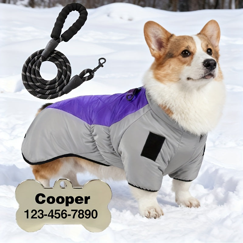Custom Pet Tag, 2pcs Set, New Large Dog Warmth Coat + Leash, Thickened Windproof Dog Clothes for Medium and Large Breeds in Autumn and Winter, Cold Weather Gear, Durable Material, Stylish Petwear, Seasonal Petwear, Outdoor Ac