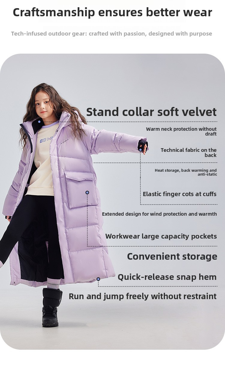 Girls Long Winter Coat Children's Autumn And Winter New Extremely Cold Long Jacket for Boys And Girls, Over-the-Knee Hooded Warm Coat for Older Children Boys And Girls Winter Coats Christmas Warm Coats