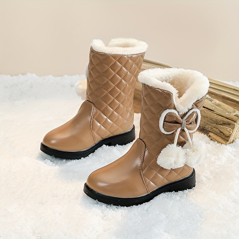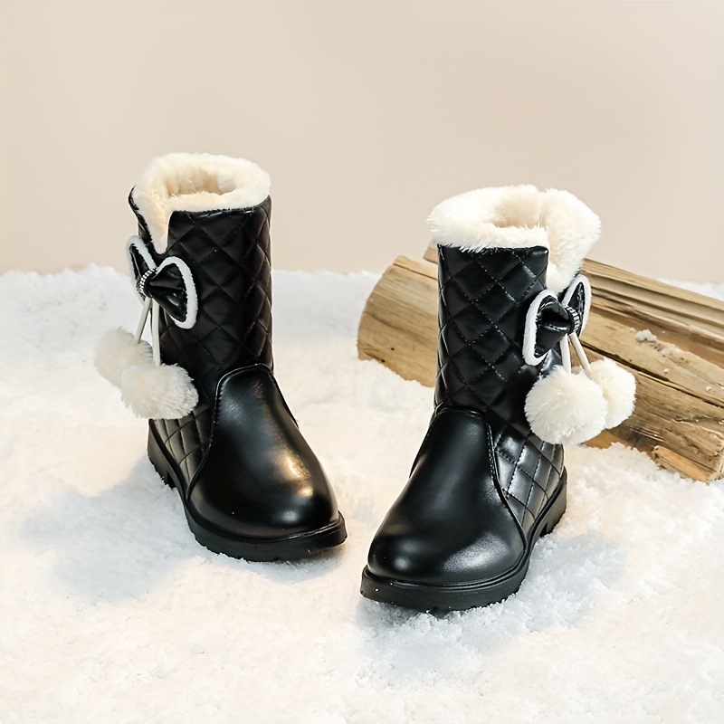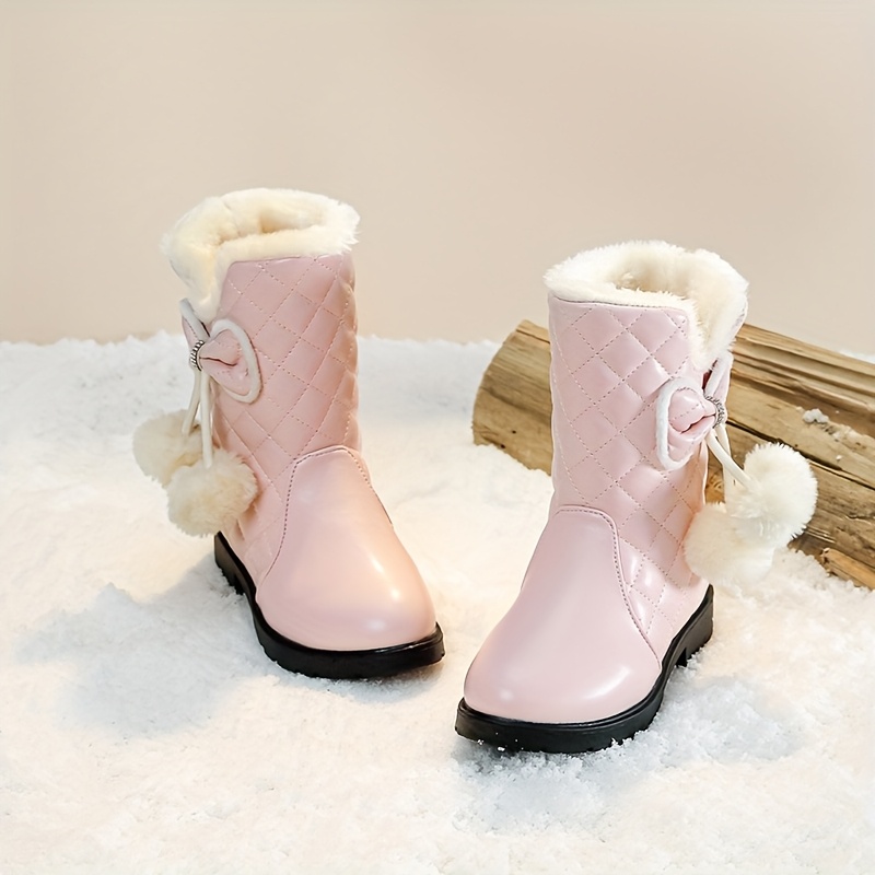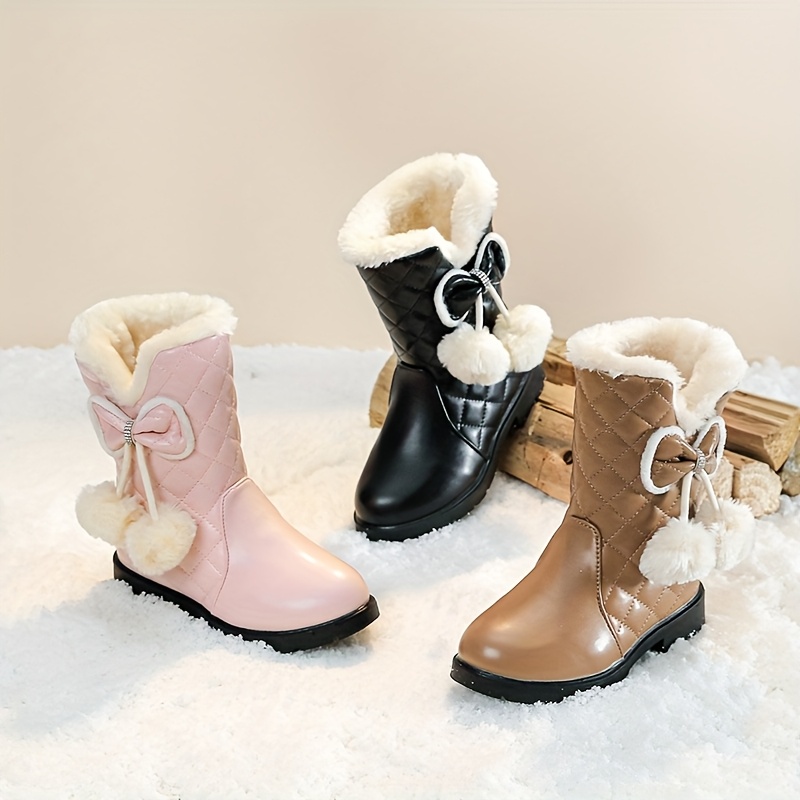 ' High Quality Winter Snow Boots with Wrist Strap - Thickened Warm Mid-Calf (Middle Tube) for ice Skating, Skiing & Outdoor Play - 2025 New Princess Bow/Striped/Solid Color Boots, Easy Slip-On for Cold Weather, TPR Sole & Fab