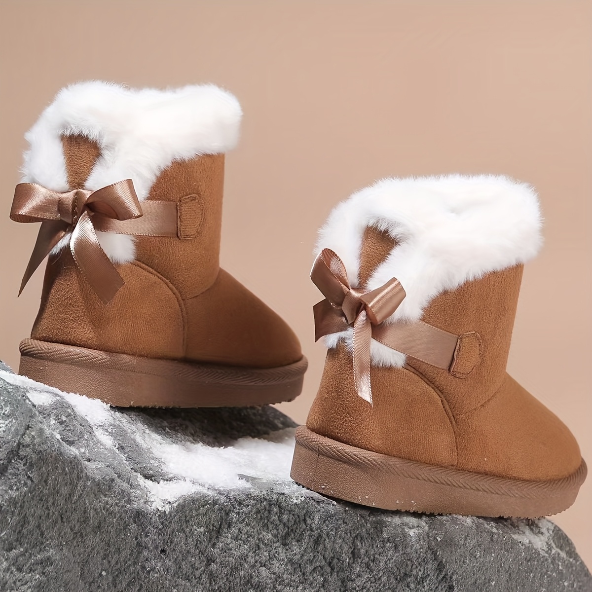 -Lined Thick Warm Shoes, Thick-Soled Comfortable Fashion Kids' Short Snow Boots, Children's Shoes, Seasonal -Lined Warm Boots for Toddler Princesses