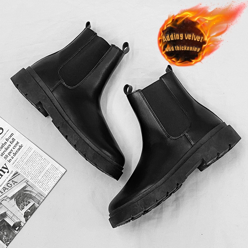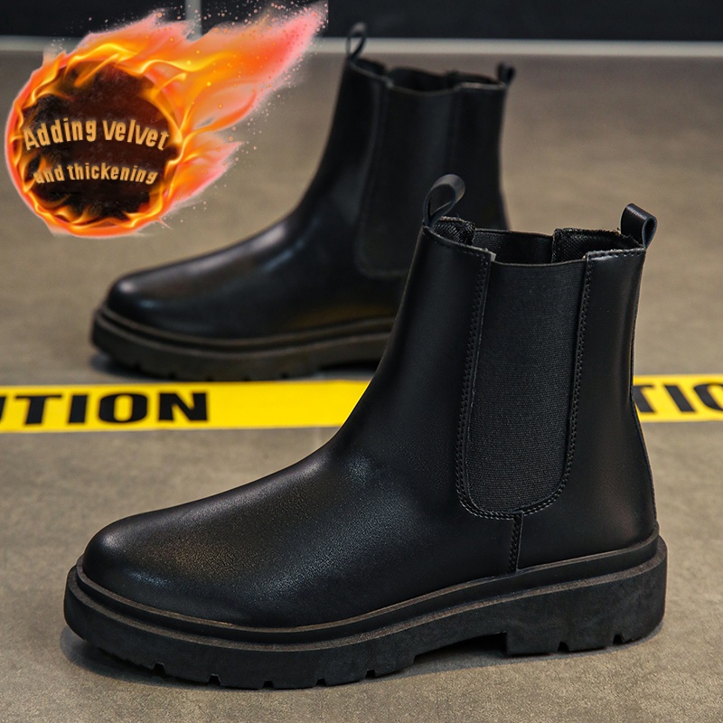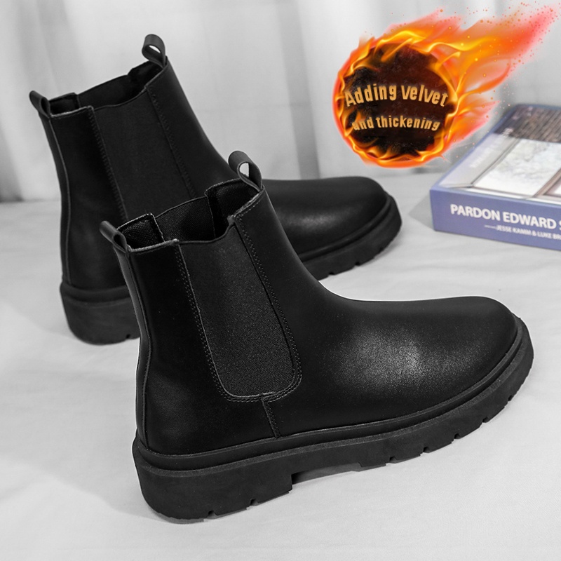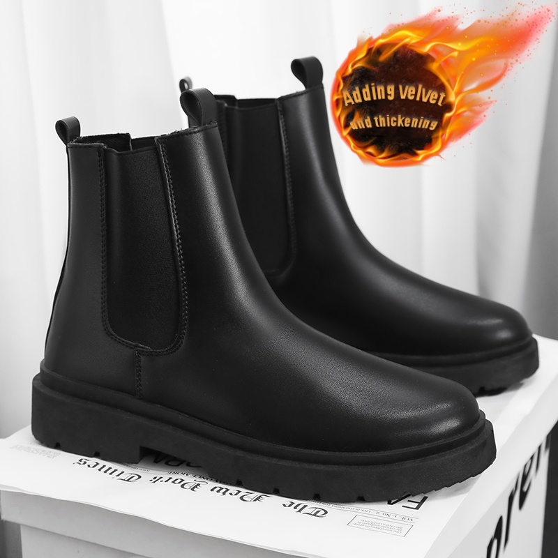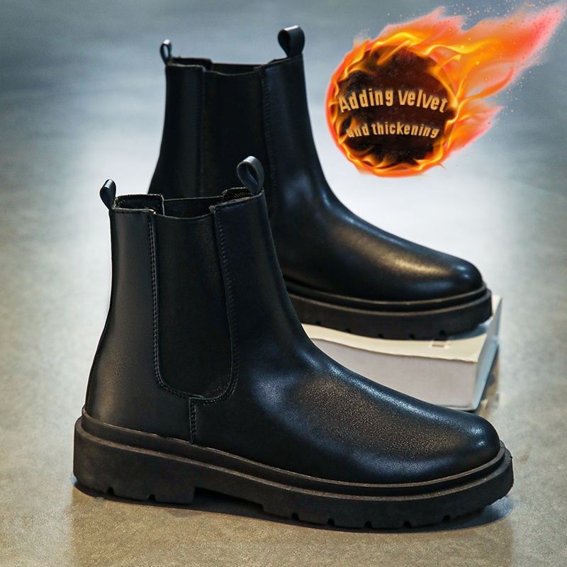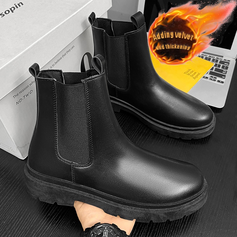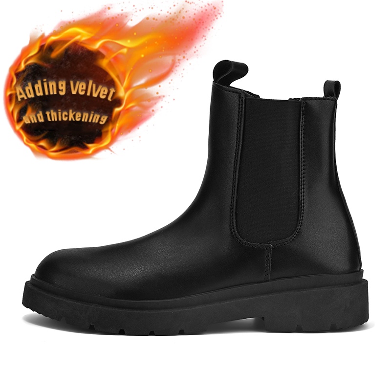 Men's British Style Slip-On Chelsea Boots - Heavy-Duty -like High-Top Tube with Easy On/Off Design | Work Boots for Men & | All-Terrain Casual &, Black Work Boots For Men, Knee High Boots For Men, Boots For Men Work, Black Bo