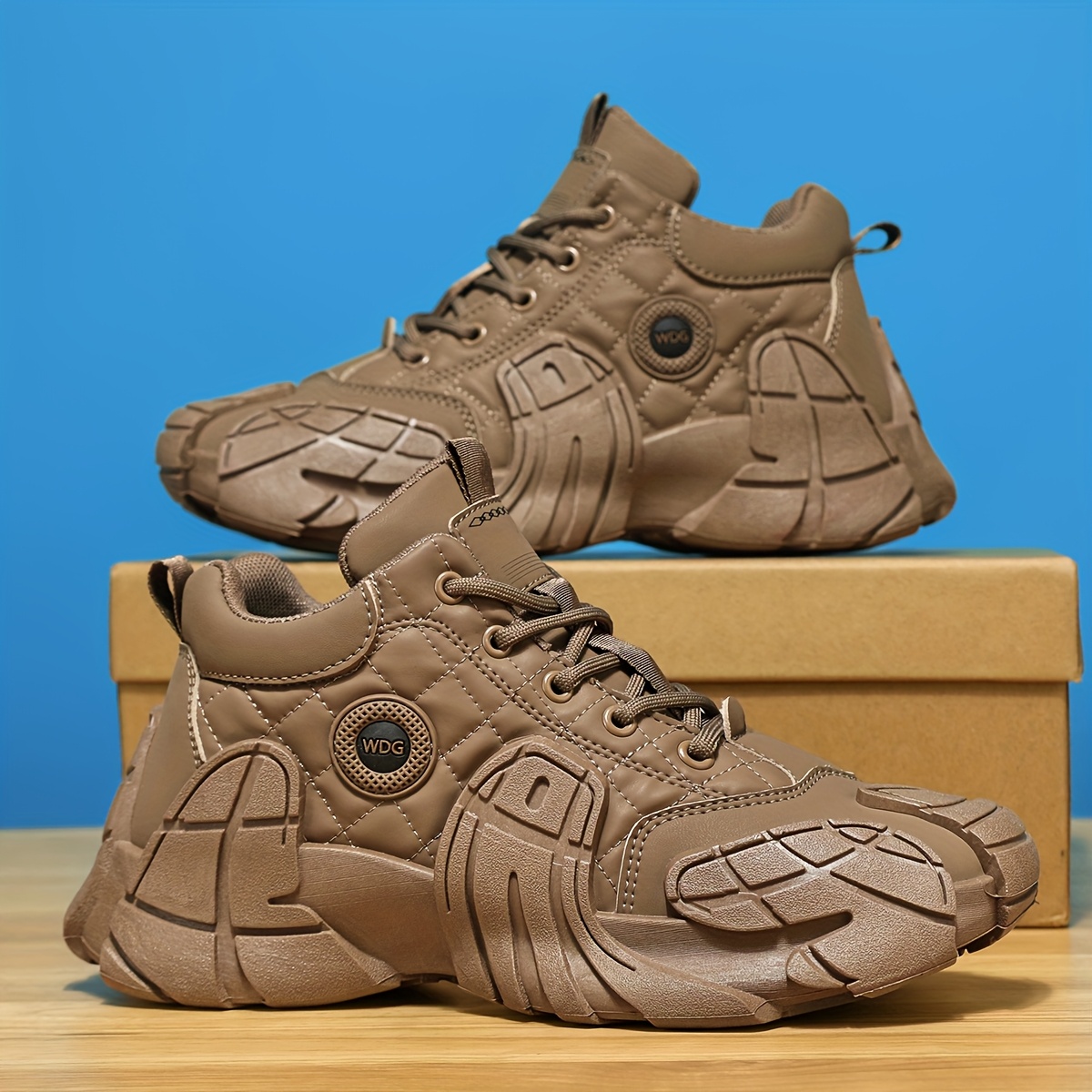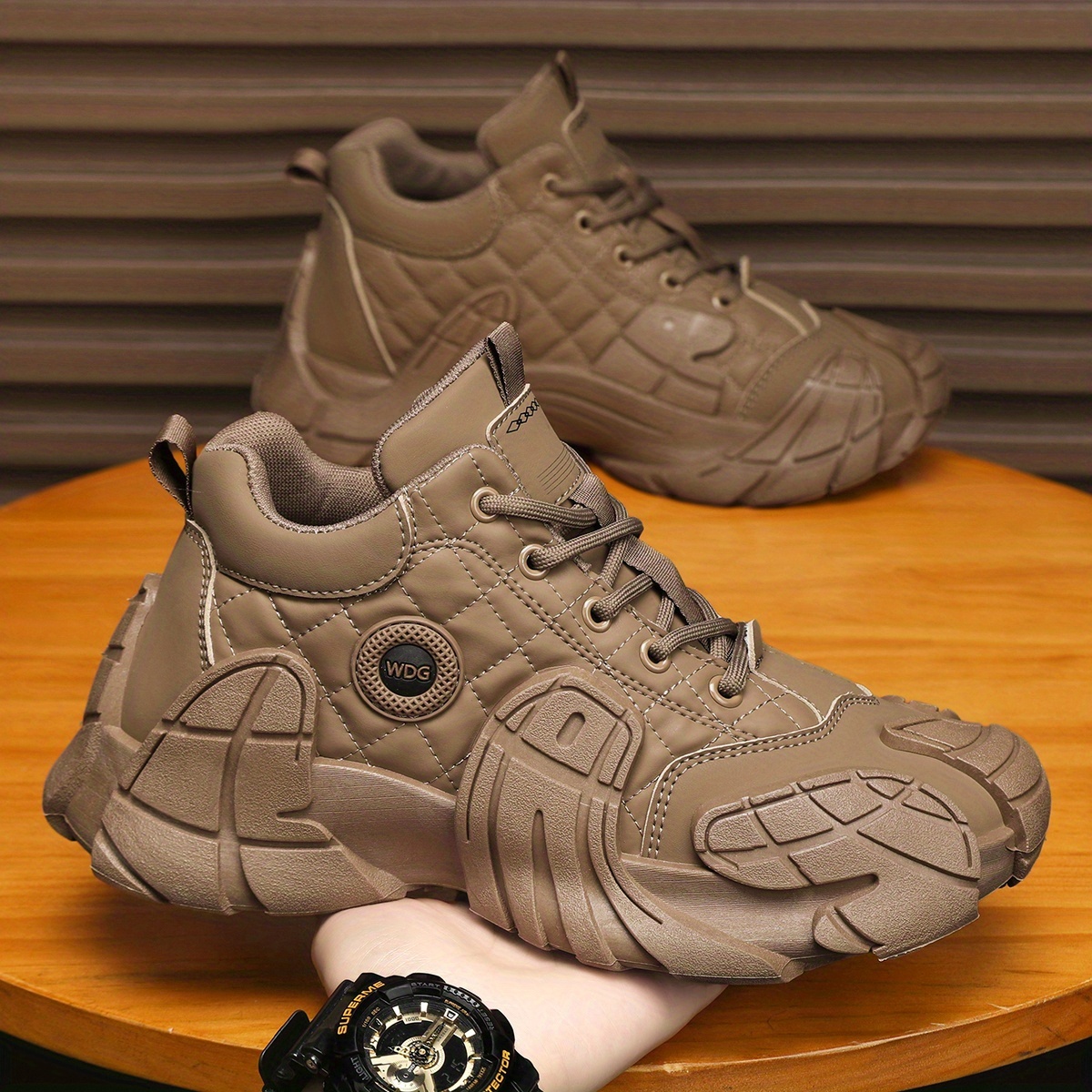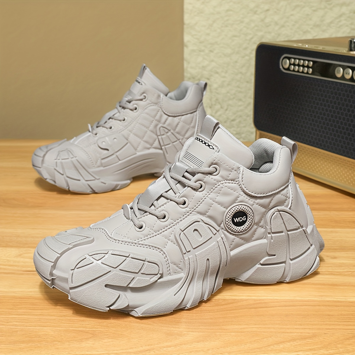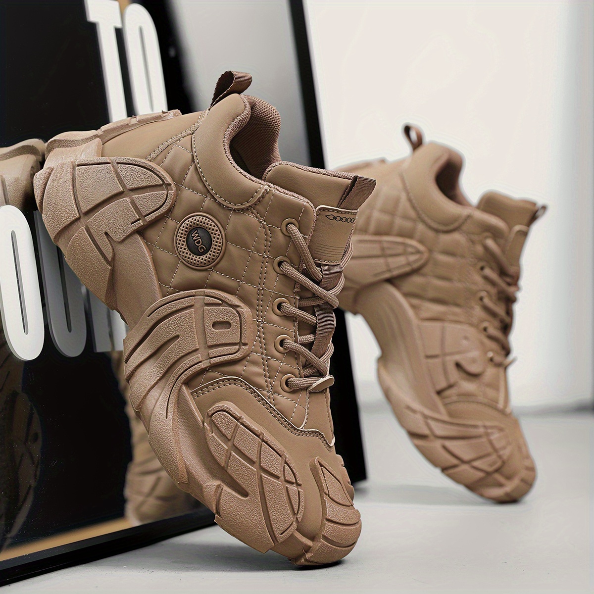 [Men's Sneakers] A Pair of Fashionable Men's Sneakers for All Seasons, Casual Hiking Shoes, Solid Color Thick Sole Dad Shoes, Round Toe Design, Lace-Up Style, Breathable Fabric Upper, Wear-Resistant Rubber Sole, Breathable Sp