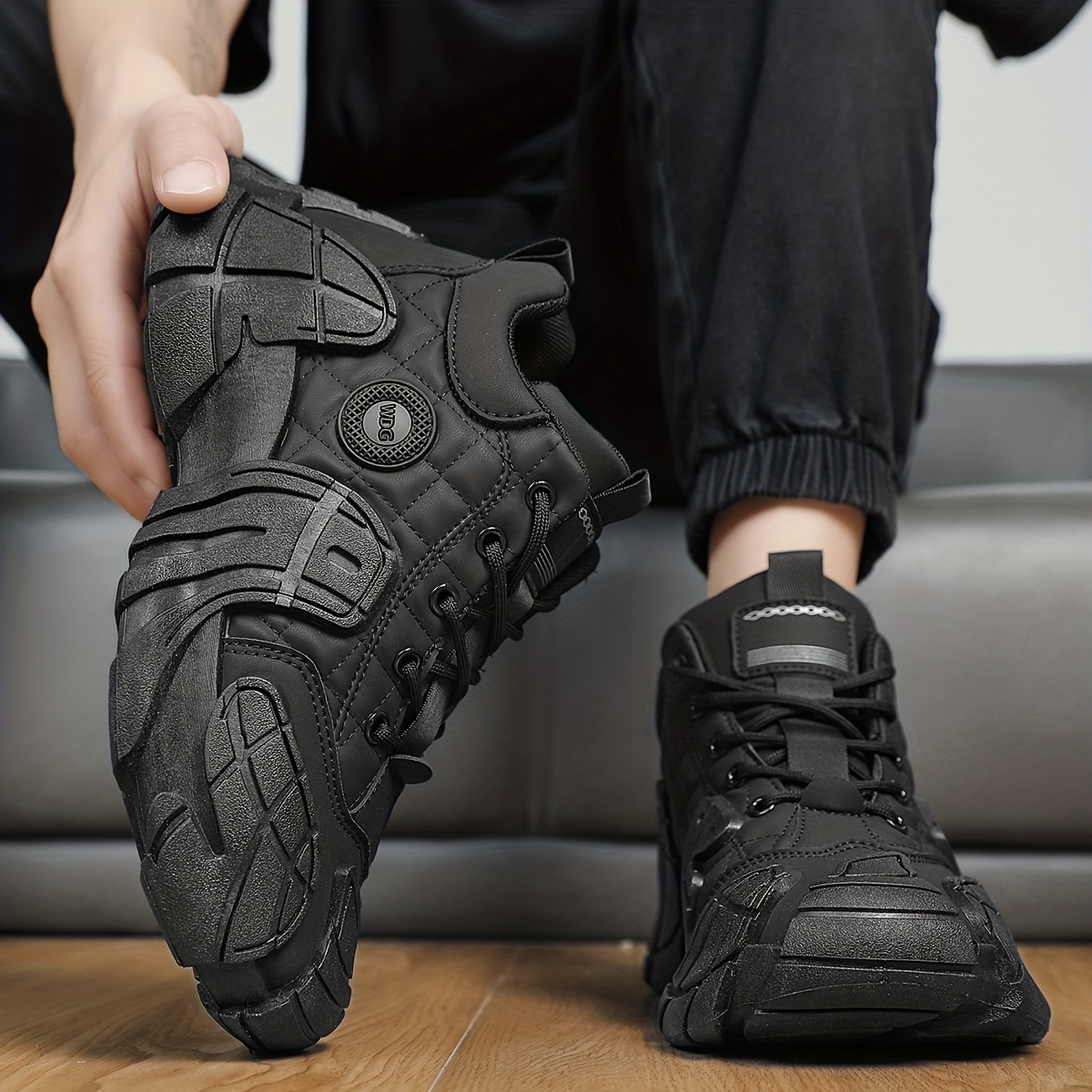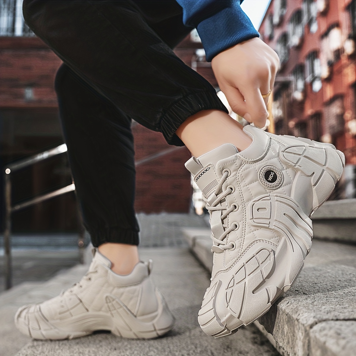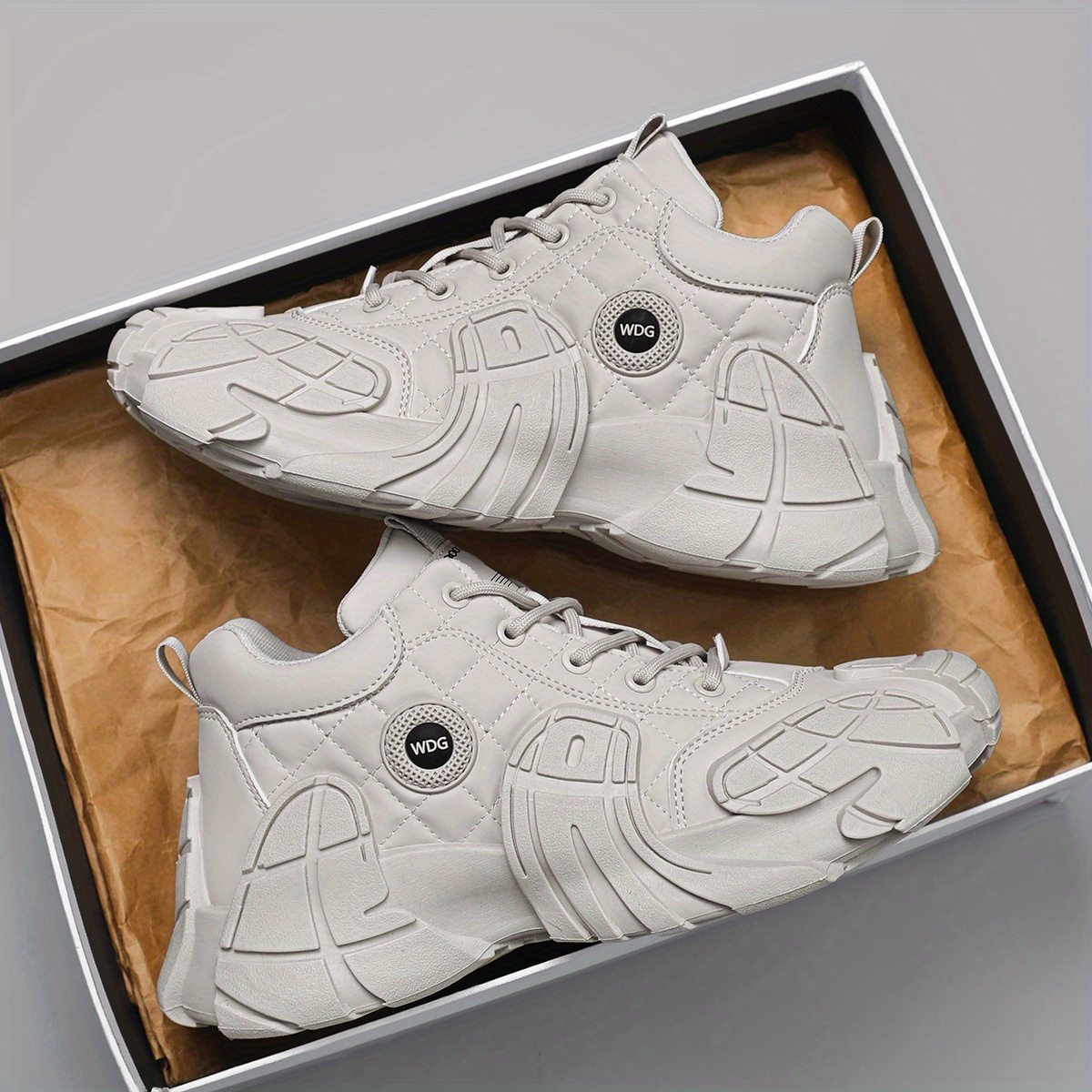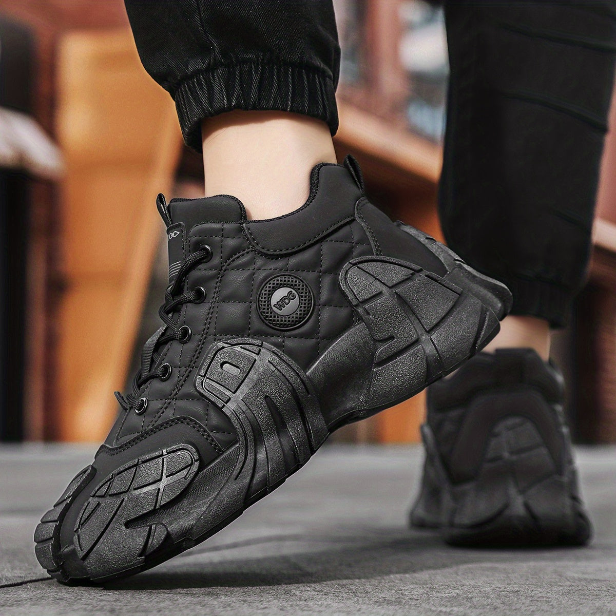 [Men's Sneakers] A Pair of Fashionable Men's Sneakers for All Seasons, Casual Hiking Shoes, Solid Color Thick Sole Dad Shoes, Round Toe Design, Lace-Up Style, Breathable Fabric Upper, Wear-Resistant Rubber Sole, Breathable Sp