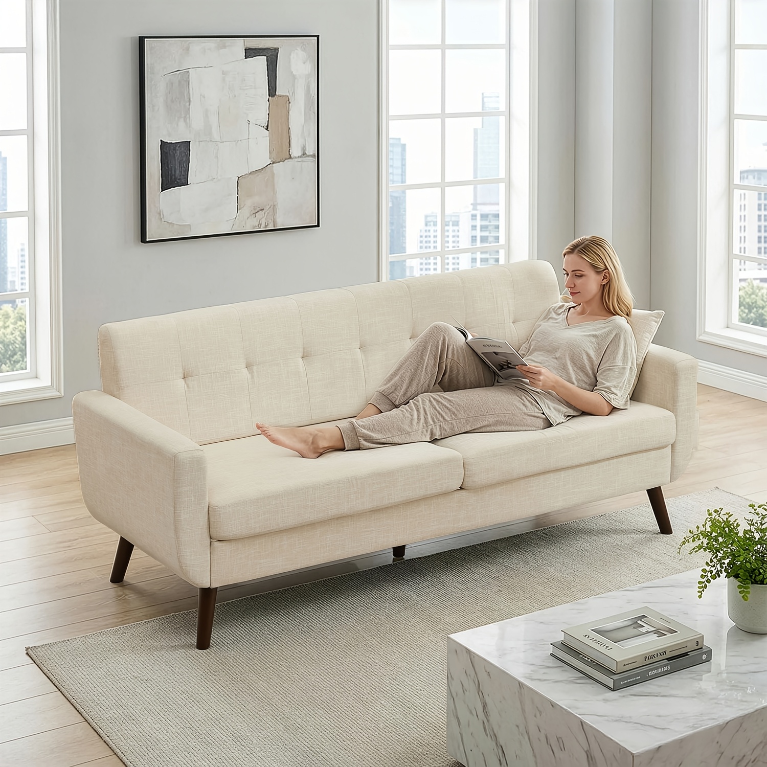 Mid Century Modern Loveseat, Button Tufted Accent Sofa, Small Couch for Living Room, Office & Small Spaces, A Top Choice for Christmas Gifts.