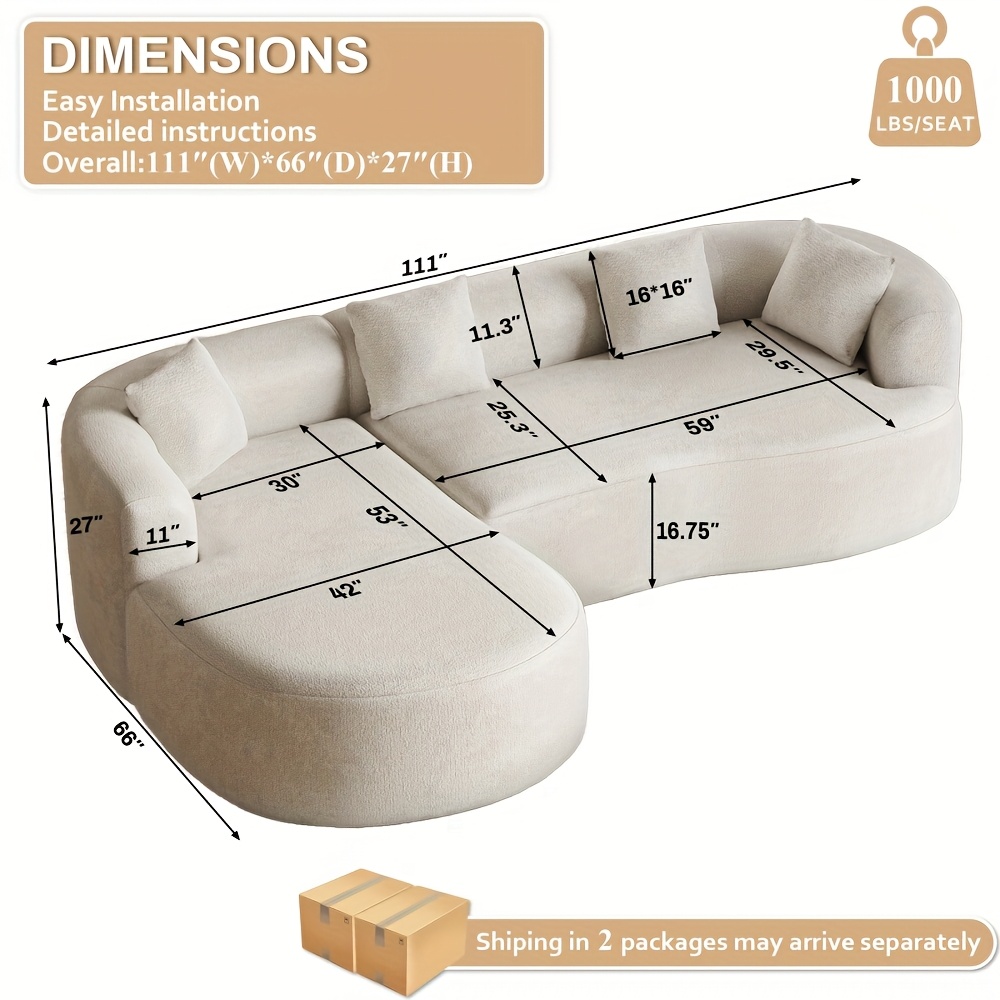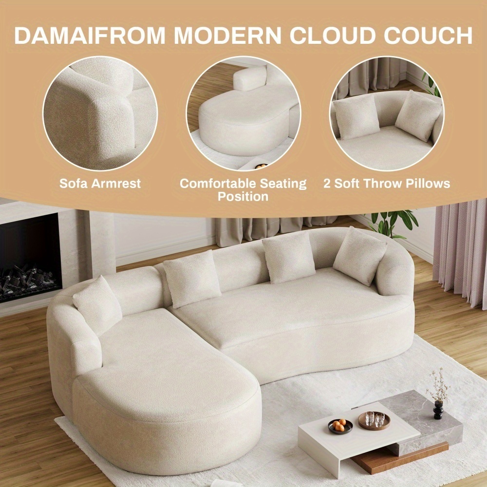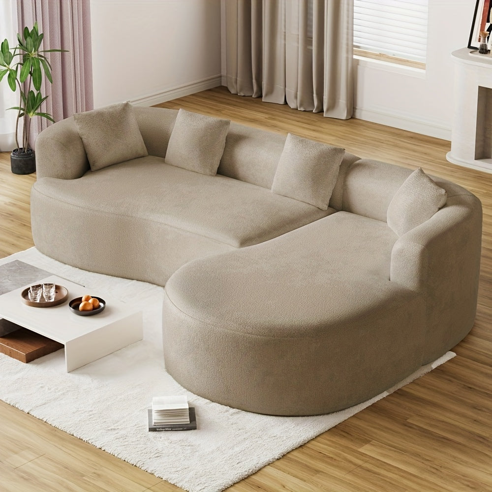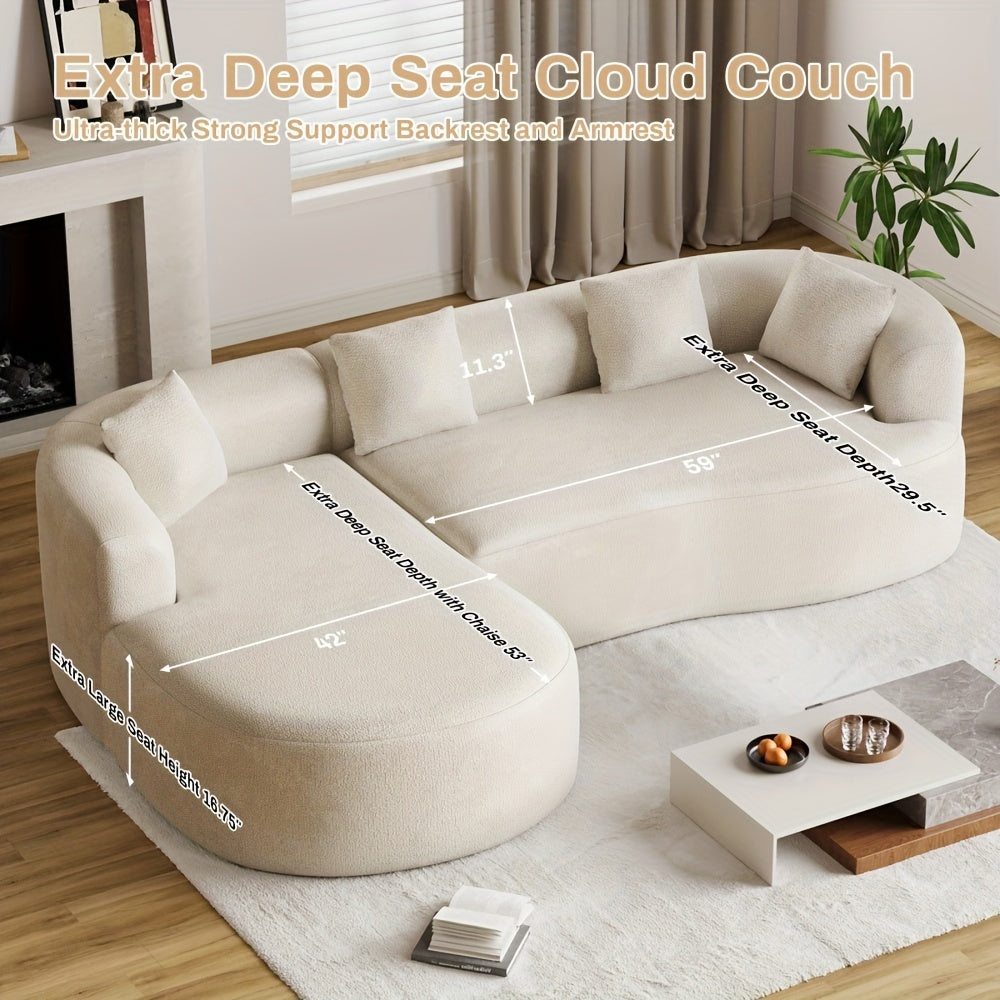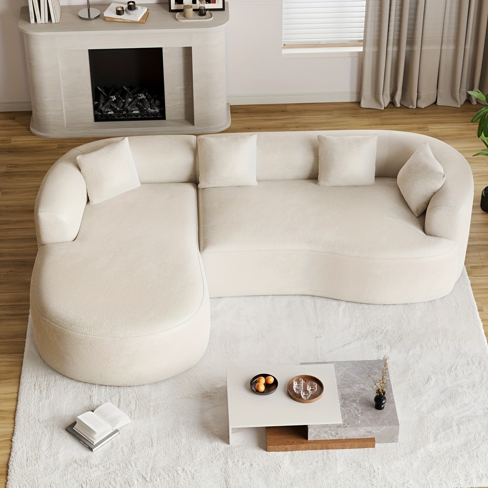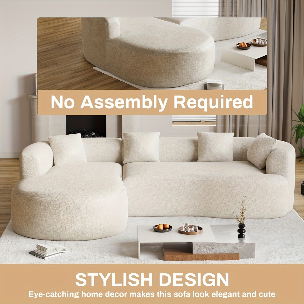 Modern 111” White L-Shaped Curved Sectional Sofa with Left Chaise, 4-Seater Luxury Chenille Couch, Extra Deep Seat & Memory Foam Cushions, No Assembly Required for Large Living Rooms - Contemporary Modern for all-White Deco