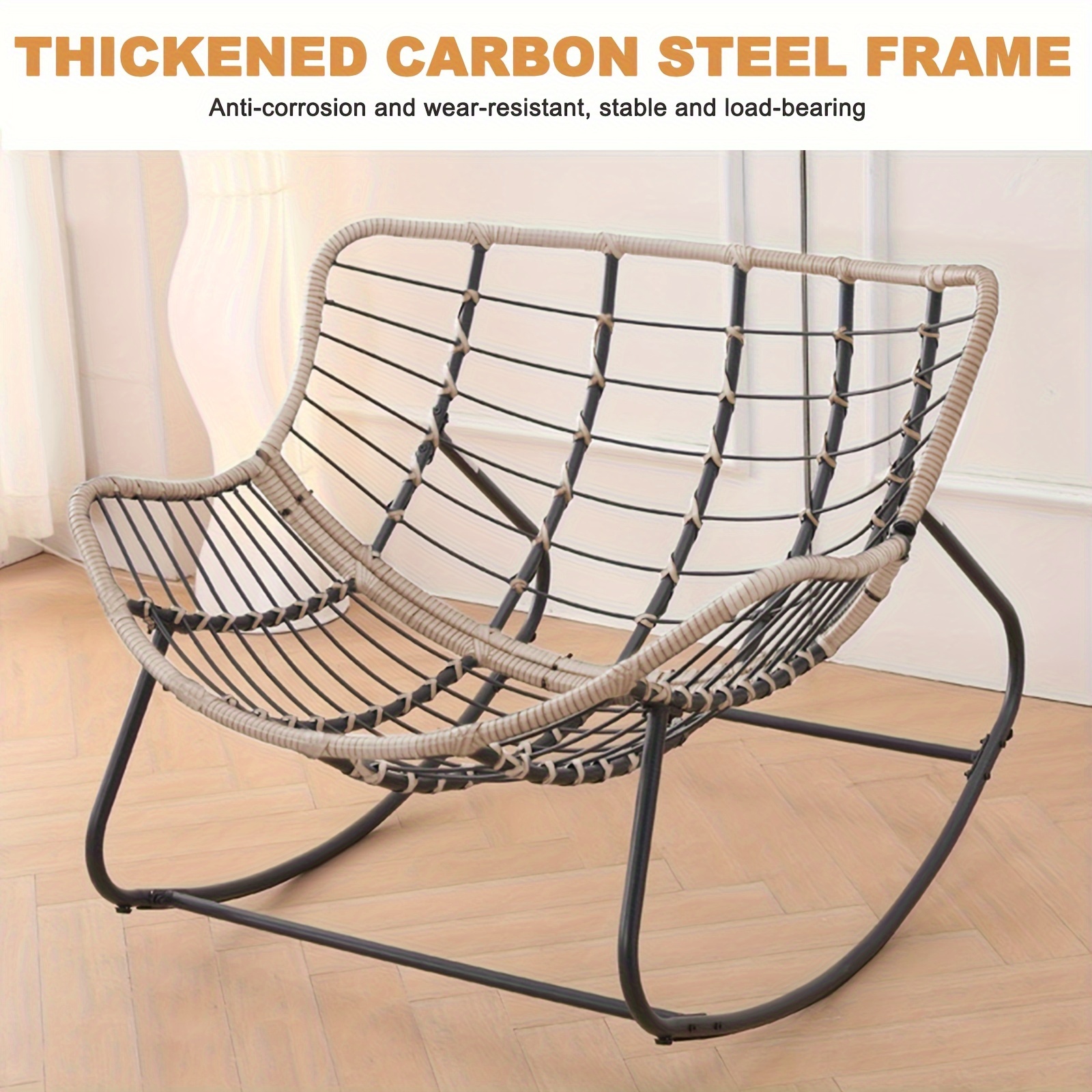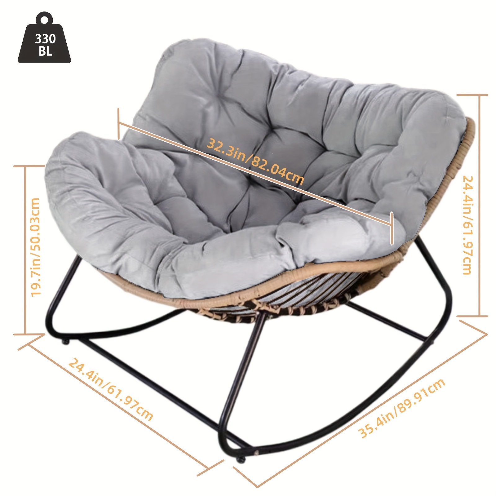 The egg-shaped rocking chair boasts generous dimensions of 38.6 inches by 33.9 inches by 26.8 inches, showcasing a stylish design that cradles you in comfort. It rocks smoothly at a 30° angle, offering a calming motion for the best relaxation experience.