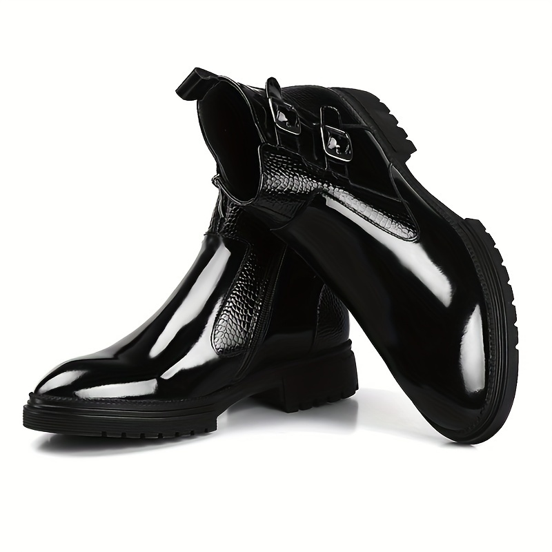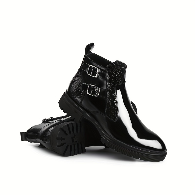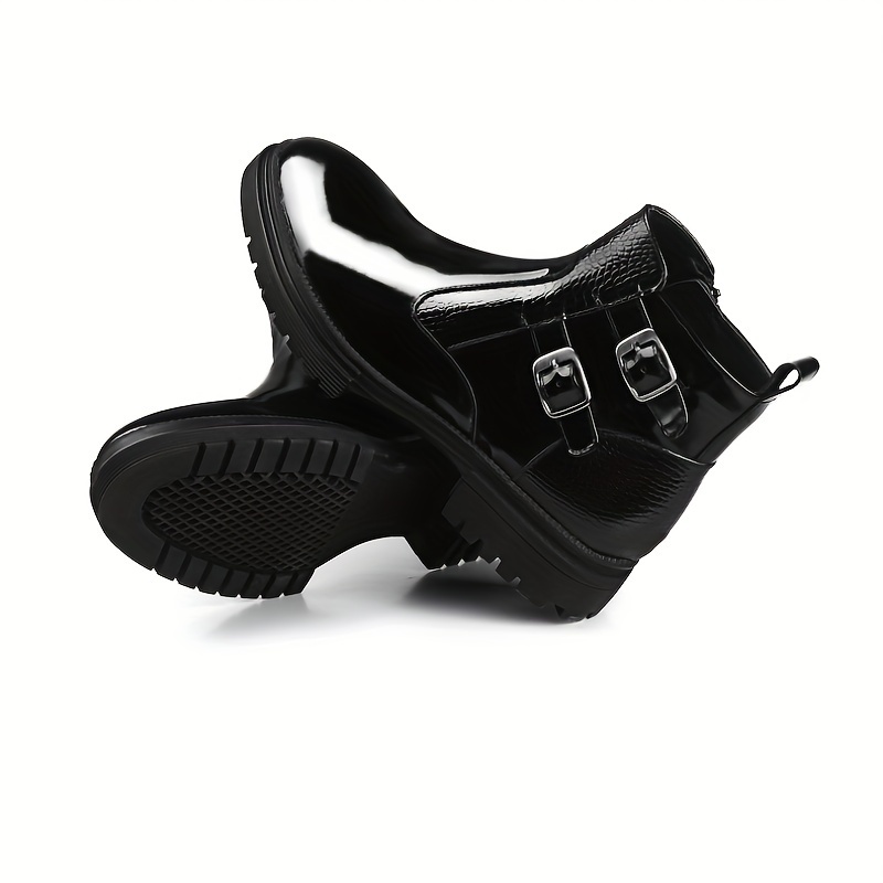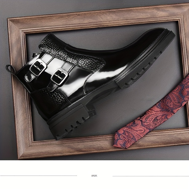 Plus Size Men'S Punk Style High Top Riding Boots With Buckle Straps, Comfy Non Slip Casual Durable Motorbike Shoes, Men'S Footwear