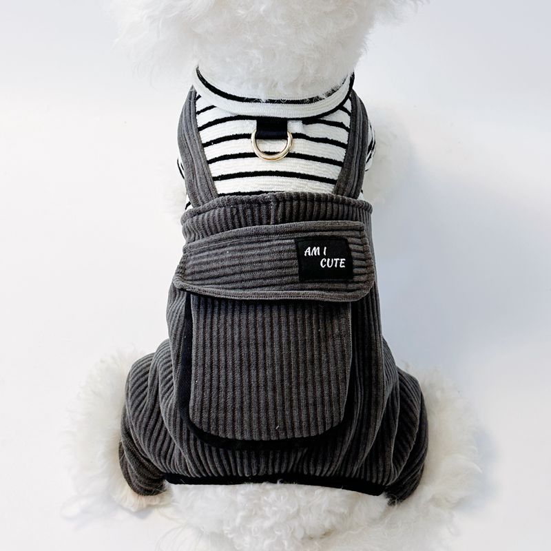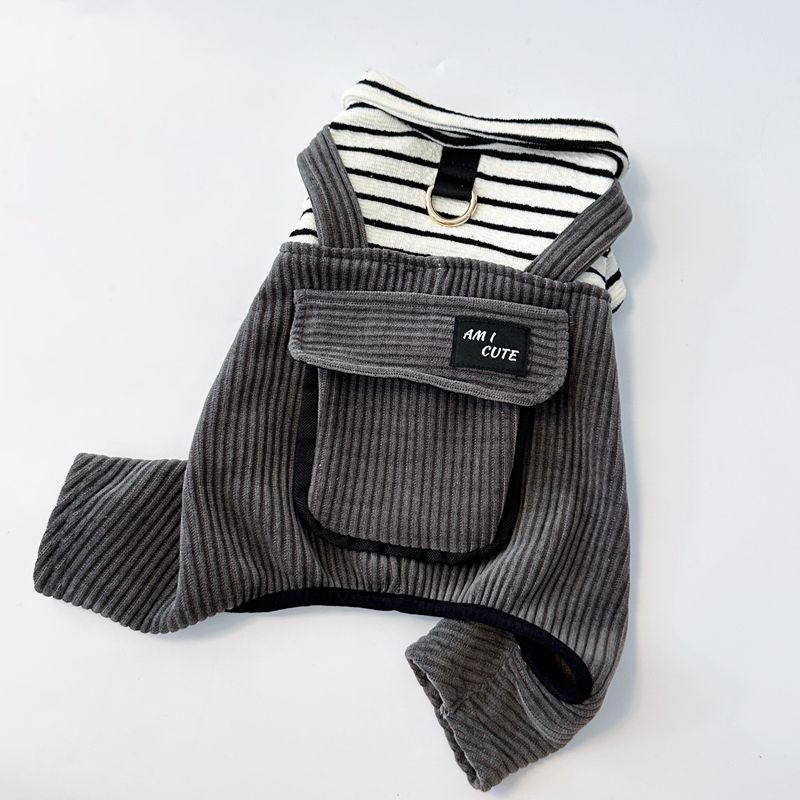 Small Breed Dog & Cat Winter Warm Corduroy-Like Jacket with Collar & Adjustable Buckle Belt - Pomeranian, Chihuahua, Shih Tzu Coat | Cozy Pet Clothes for Xmas, Cold Weather (Grey, Easy On/Off)