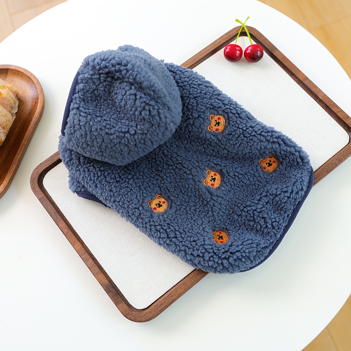 Soft Knitted Puppy Sweater with Fluffy Pom-Pom Hat - Winter Warm Dog Coat for Small Breeds, Snap Button & Zipper Closure, Cozy Blue Floral Design, Durable & Comfortable for Pomeranian, Chihuahua, Shih Tzu - Ideal for Photosho