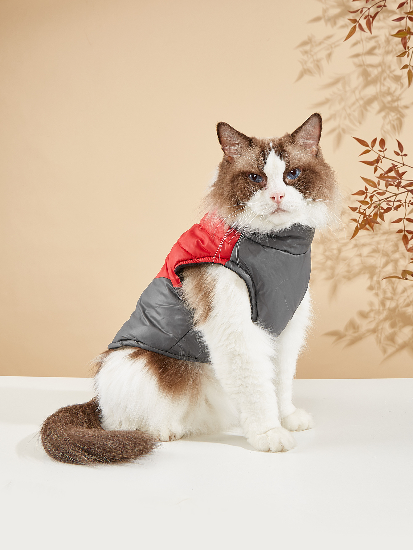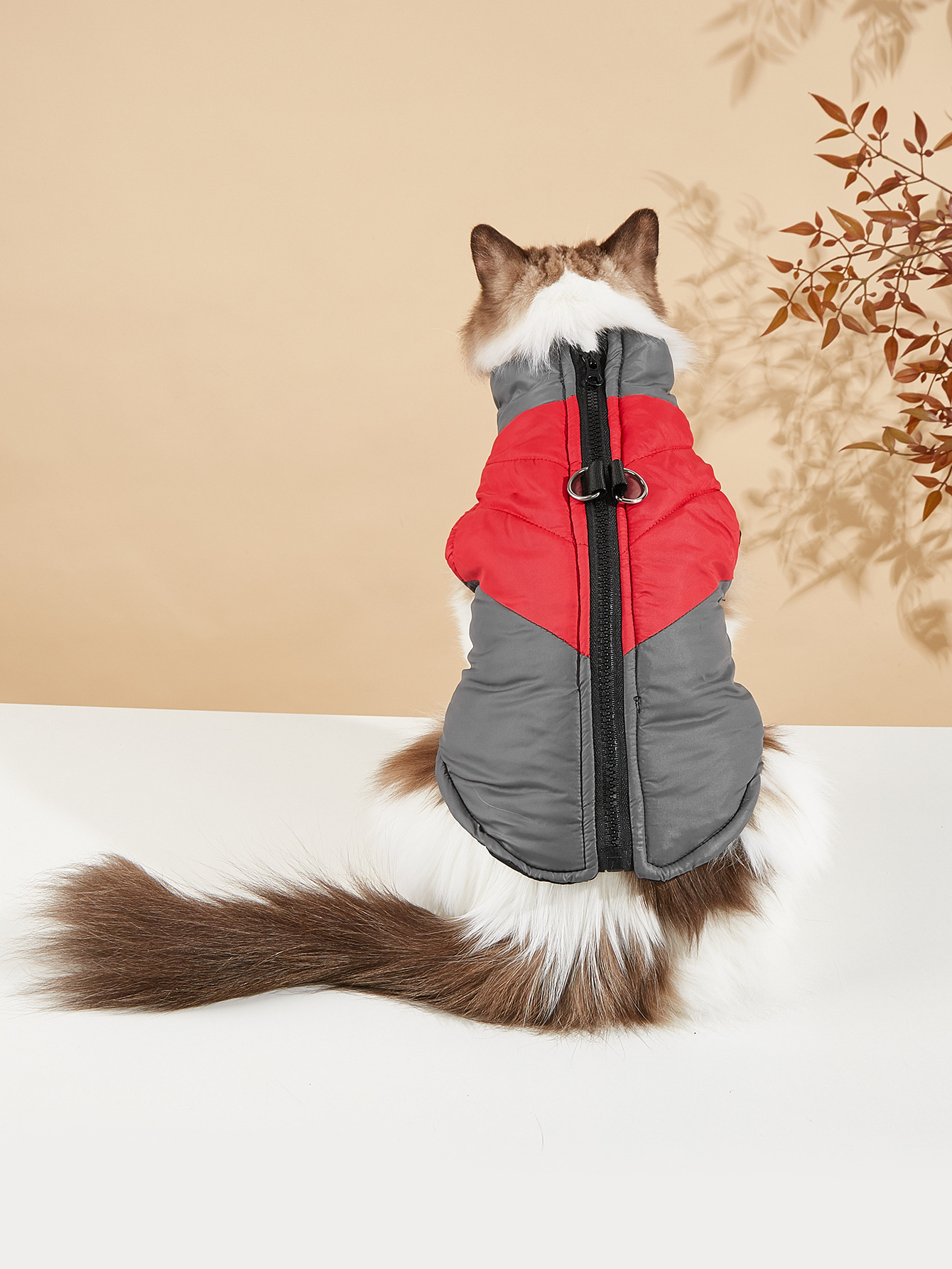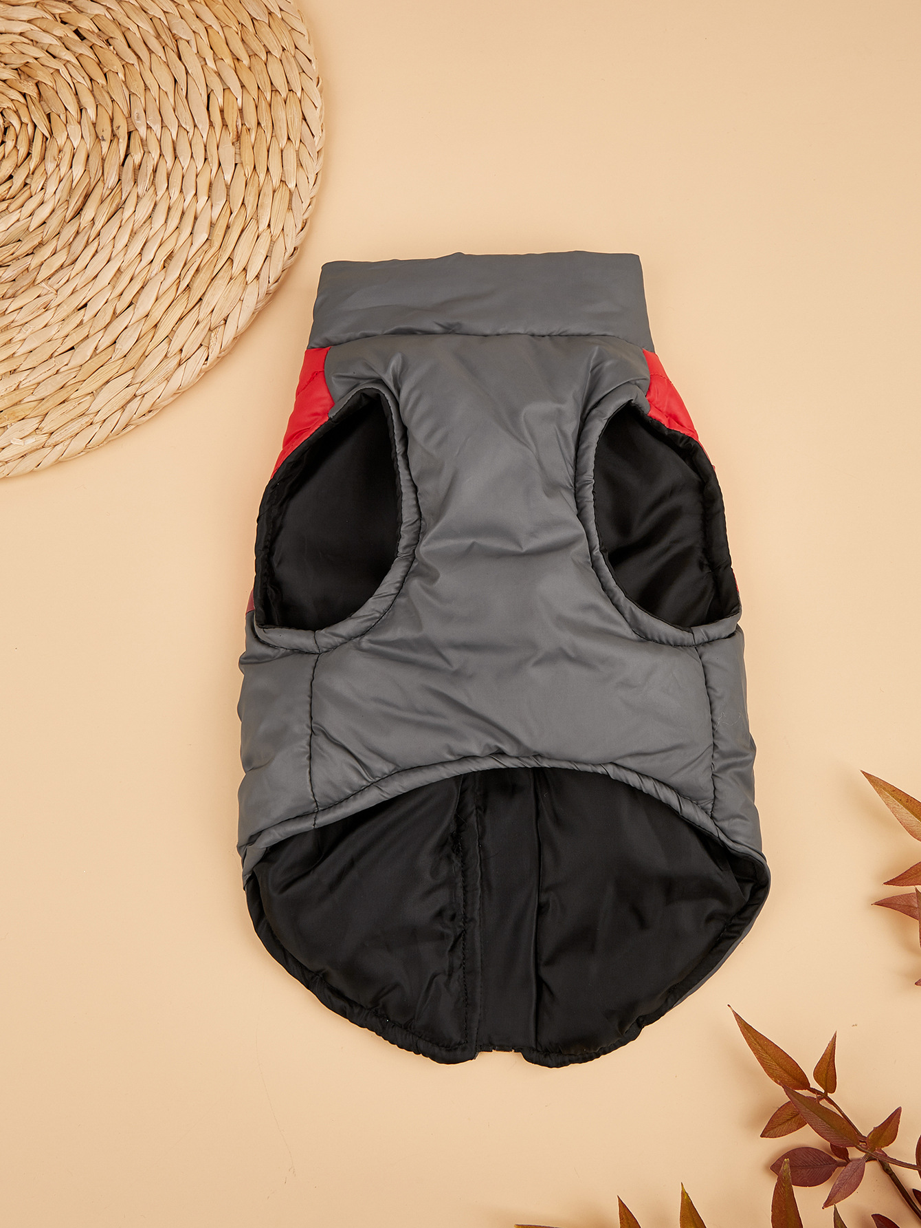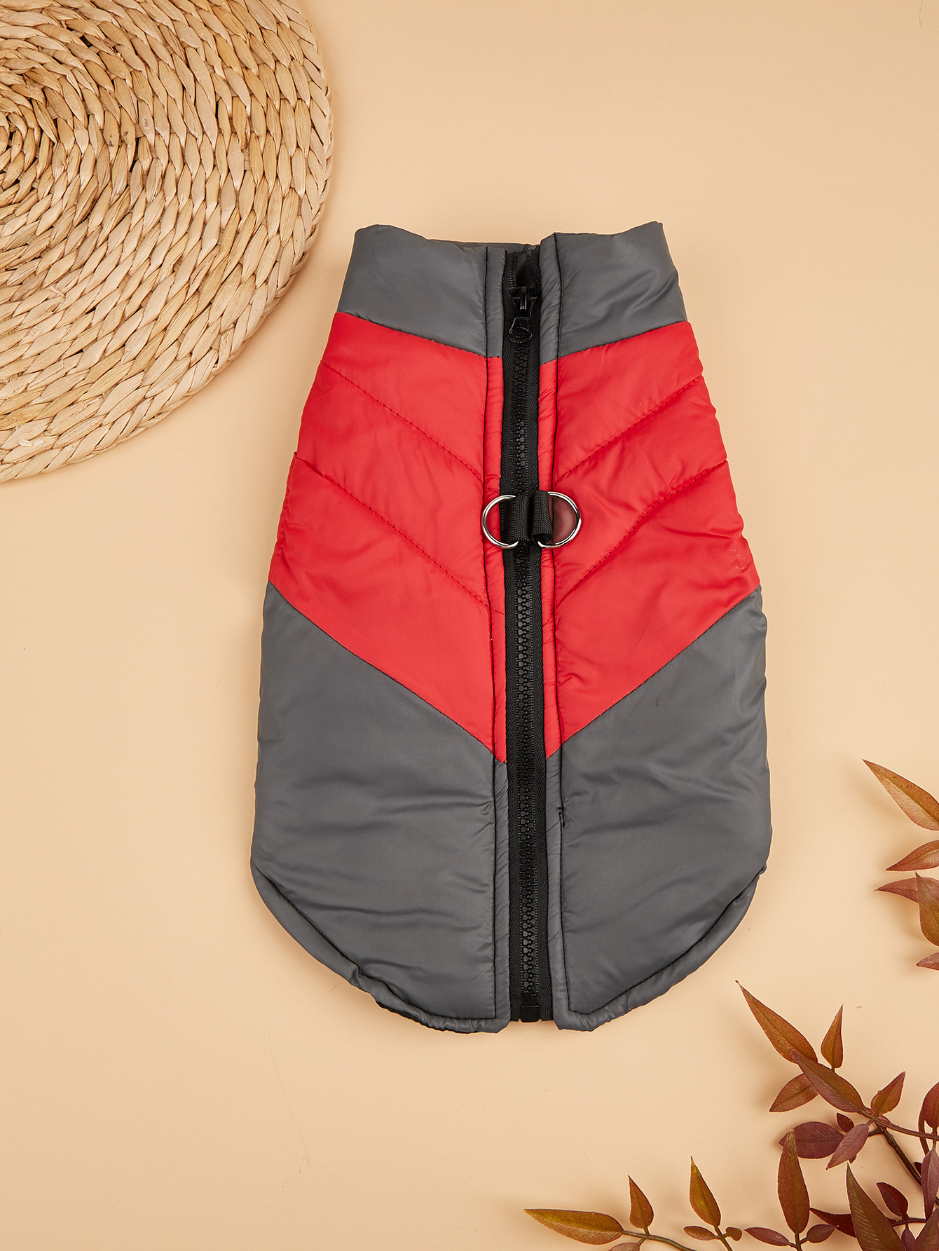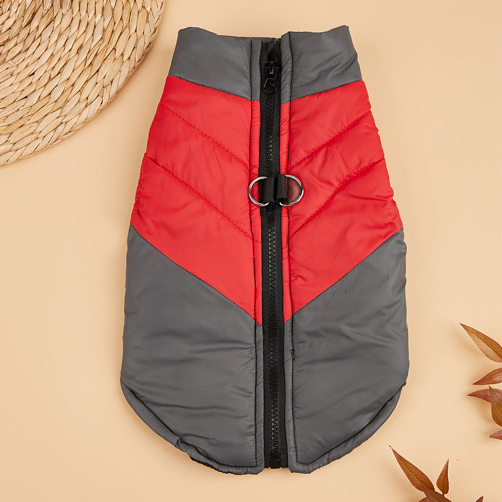 Thickened Warm Winter Dog & Cat Vest with Full-Zip Closure - Leash-Compatible Cozy Pet Jacket for Small & Medium Dogs & Cats, Soft Warm Lining, Easy On/Off, Durable & Comfortable for Outdoor Walks, Cozy Winter Outfit (GreyRed