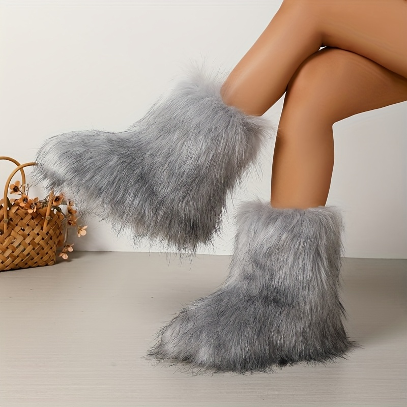Women's Faux Fur Boots, Winter Snow Boots, Warm Fluffy Faux Fur Snow Boots, Outdoor Flat Bottom Warm Shoes, Suitable for Christmas And Valentine's Day Gifts (Style Enthusiasts), Essential Tools for Warmth -3 Colors